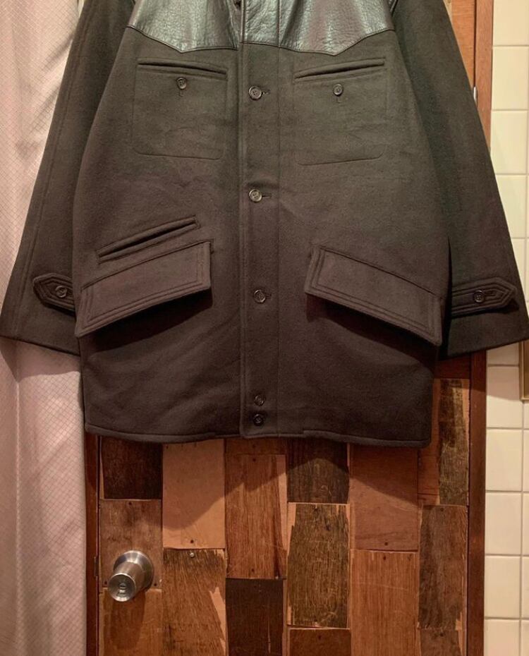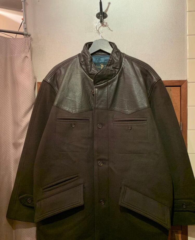 “POLO CLUB” 90's moss green wool/nylon leather switch coat