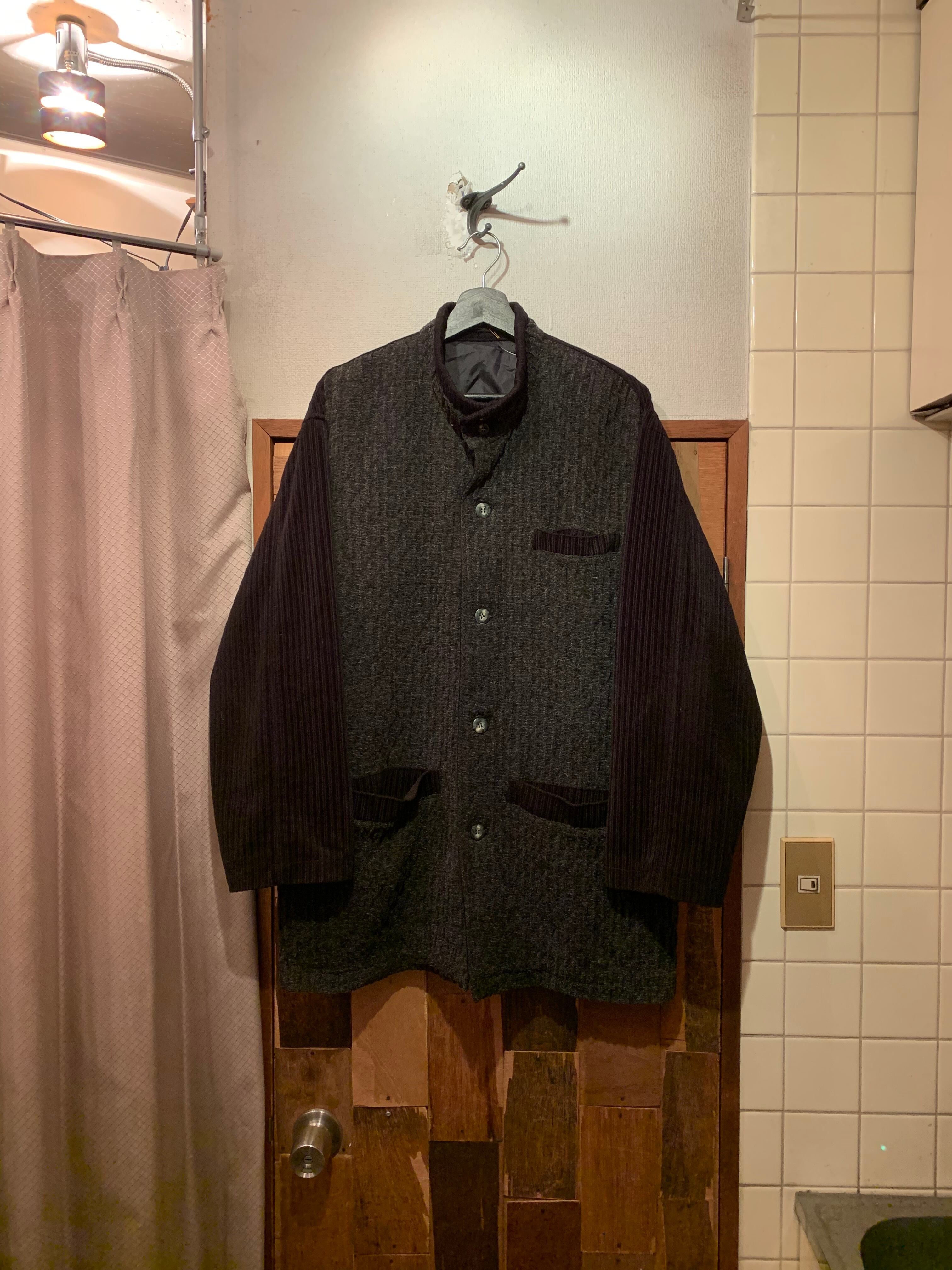 “Monsieur Greco” black×charcoal gray poly/wool/acrylic switch design stand-collar jacket