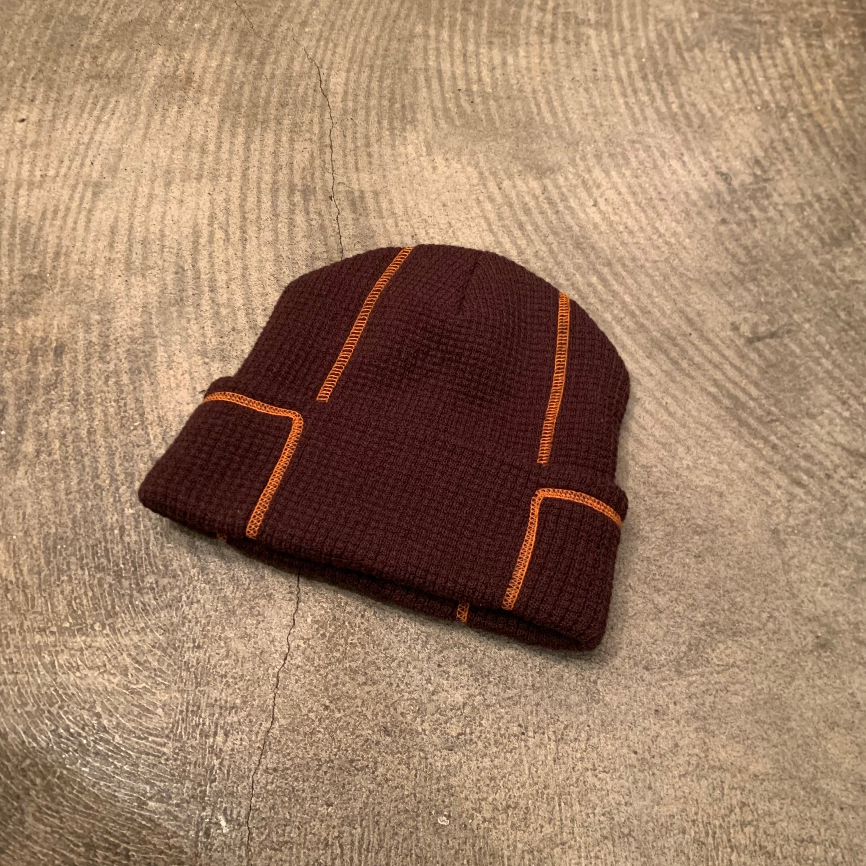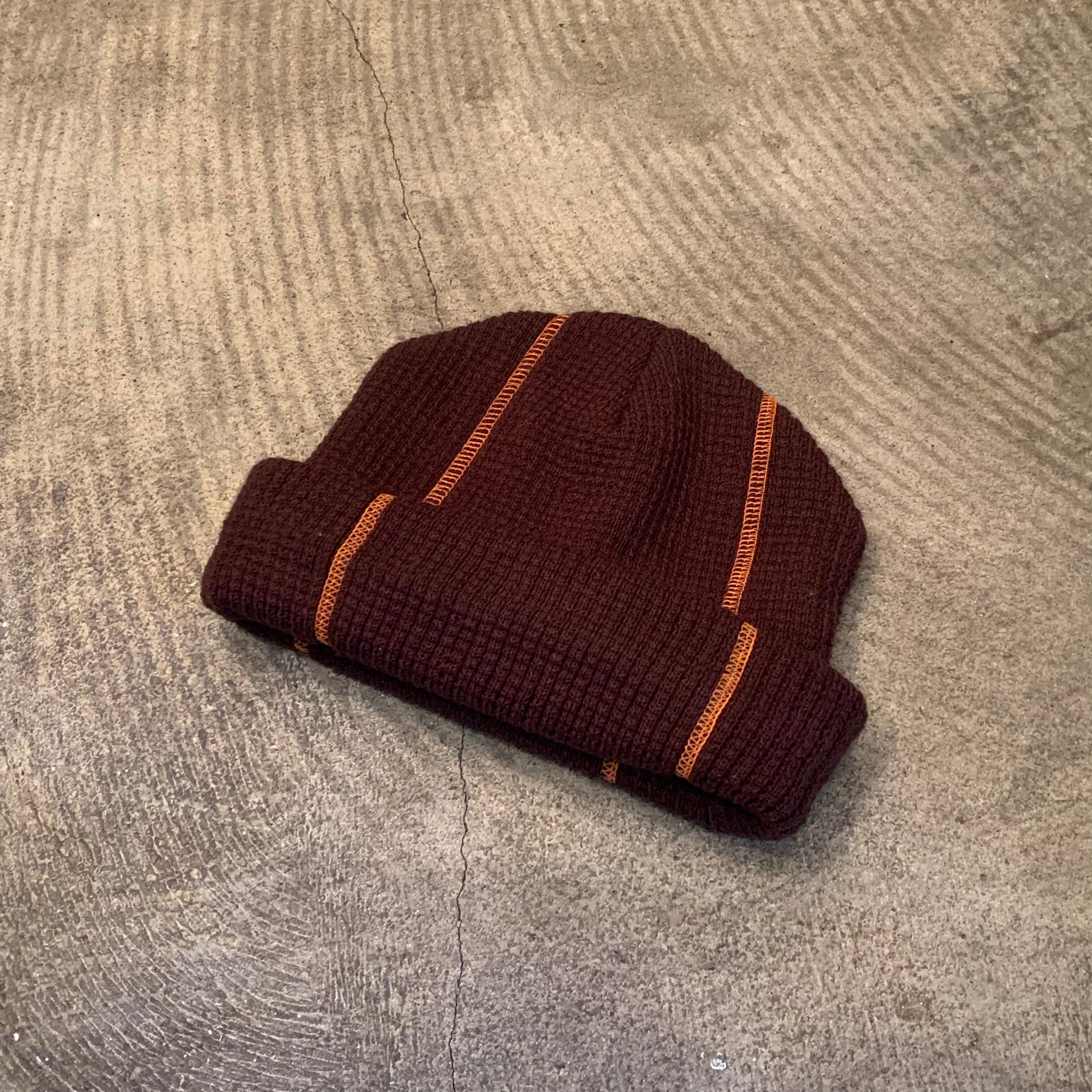 “brand unknown” brown×orange acrylic stitch design cap