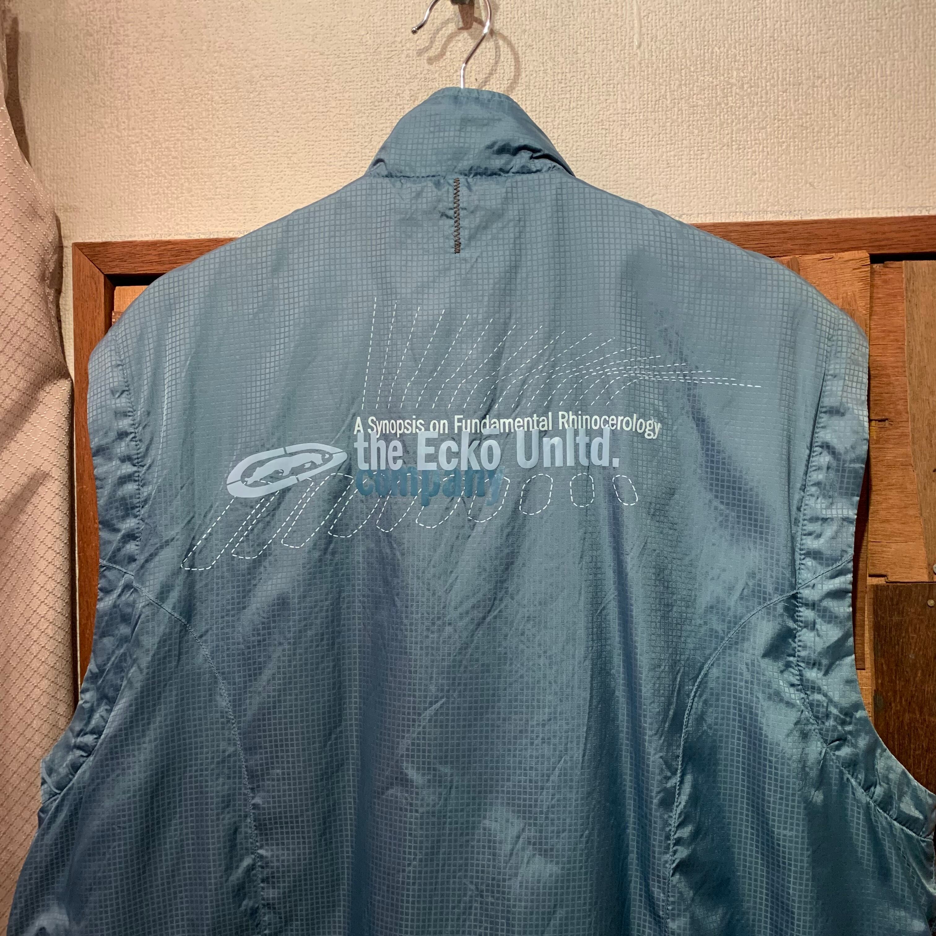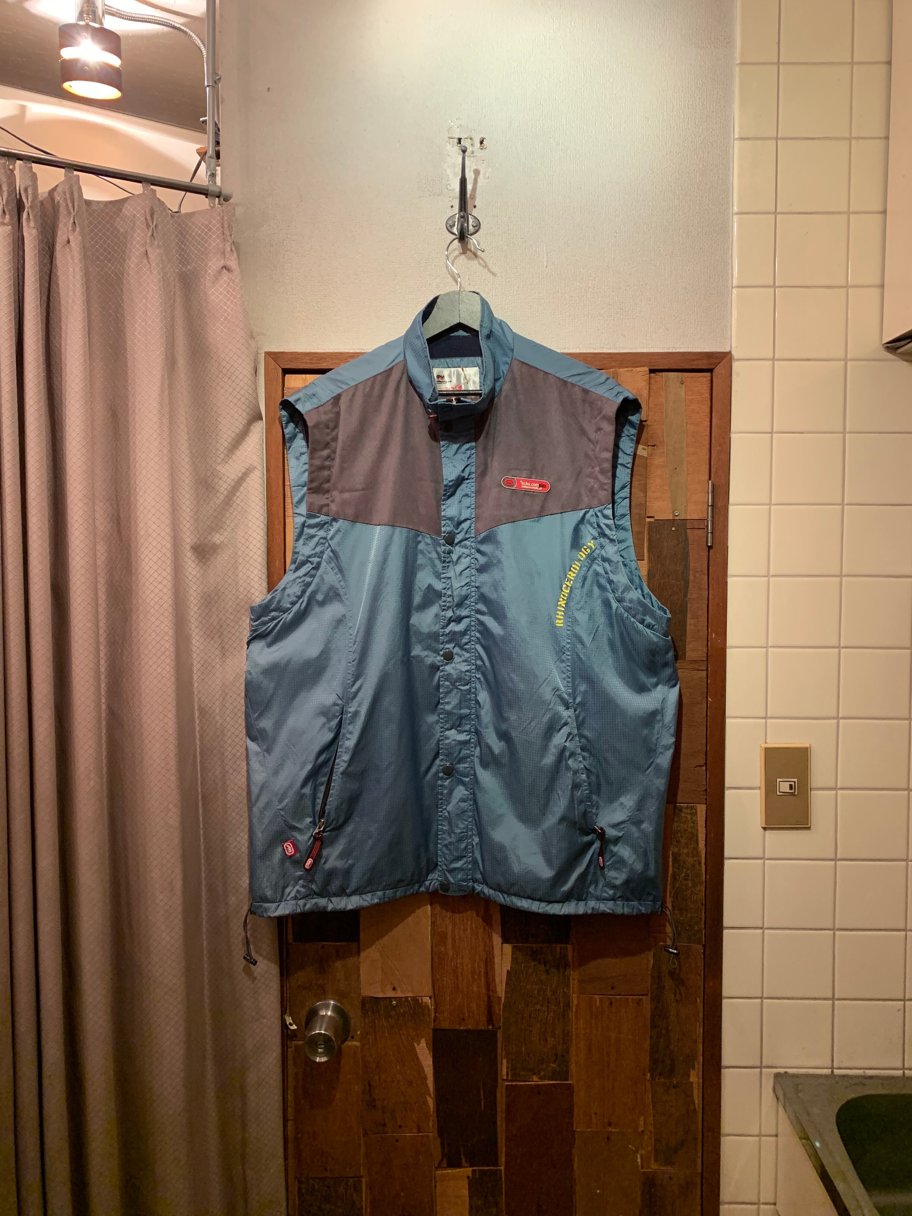 “ECKO” light blue×charcoal nylon switch design vest