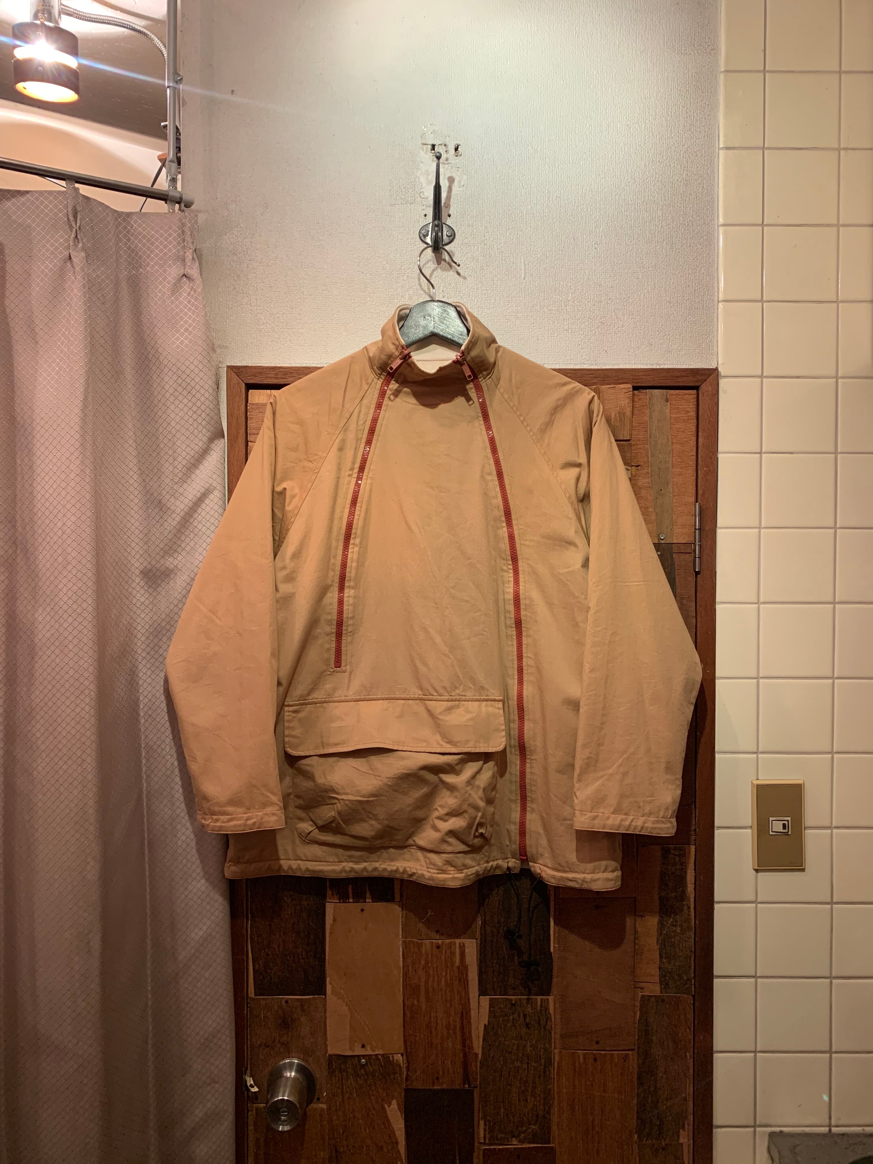 “ARW” ivory×light brown cotton double zip design reversible jacket