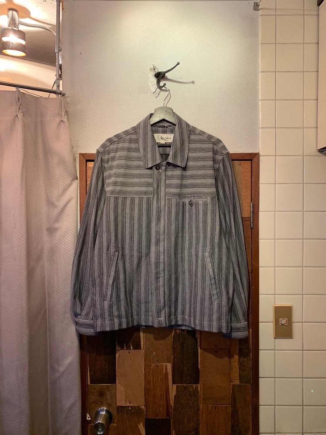 “KEN VALIDO” light gray×black poly/cotton stripe pattern design jacket