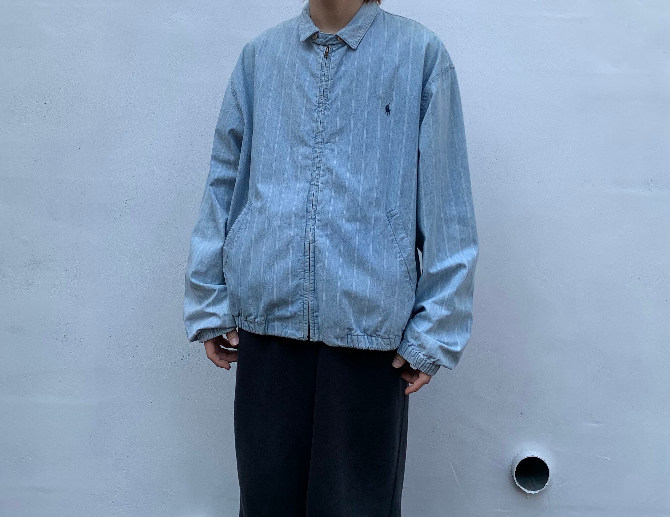 “polo by Ralph Lauren” made in U.S.A 80's~90's light blue×white logo&line design jacket