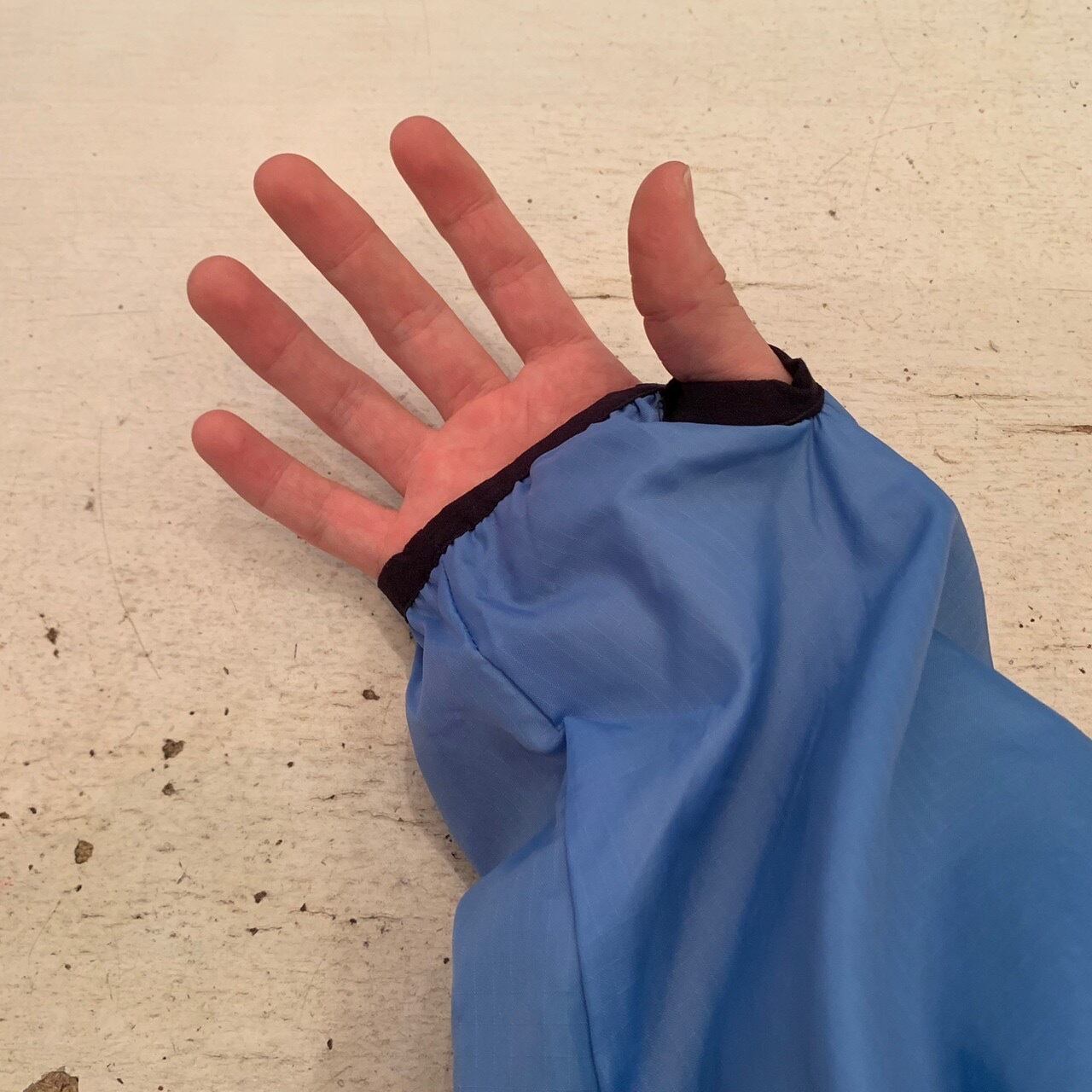 “An And A” gray×light blue nylon/poly reversible zip-up jacket