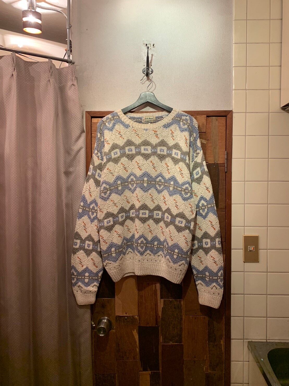 “L.L.BEAN” 90's ivory base repeating pattern hand knit sweater