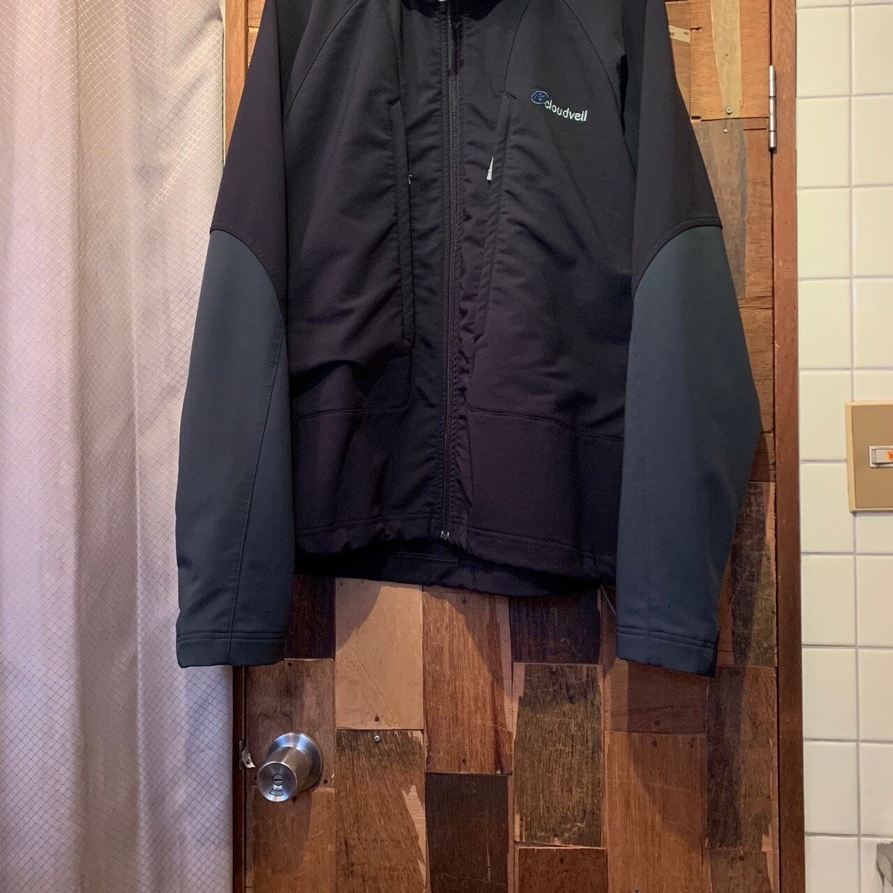 “cloud veil” black×charcoal navy softshell zip-up pocket jacket