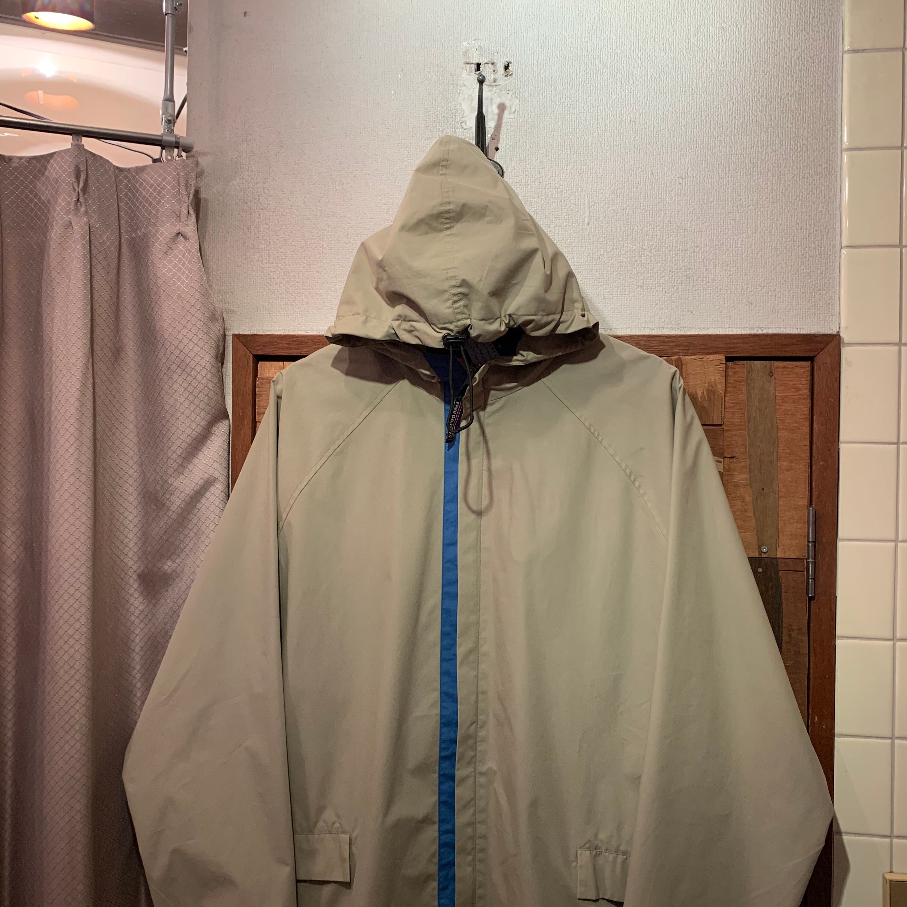 “FREE DELIVERY “ 〜00's beige×light blue poly/cotton unique zip&drawcord design hooded JKT