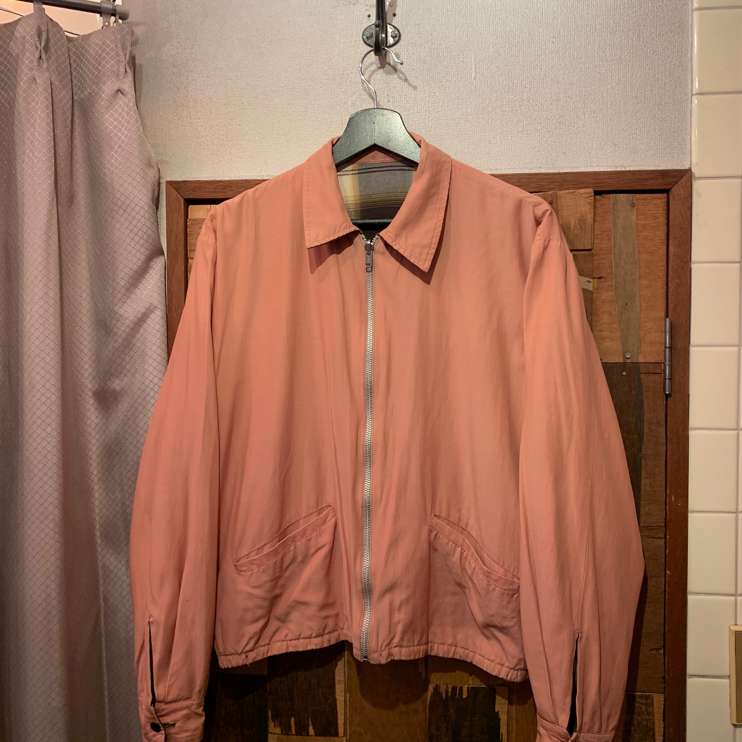 “DENIME” 90's pink beige×check pattern zip-up jacket Reversible!!