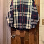 “J.CREW” 90’s dark navy×white base cotton check pattern zip-up shirt JKT