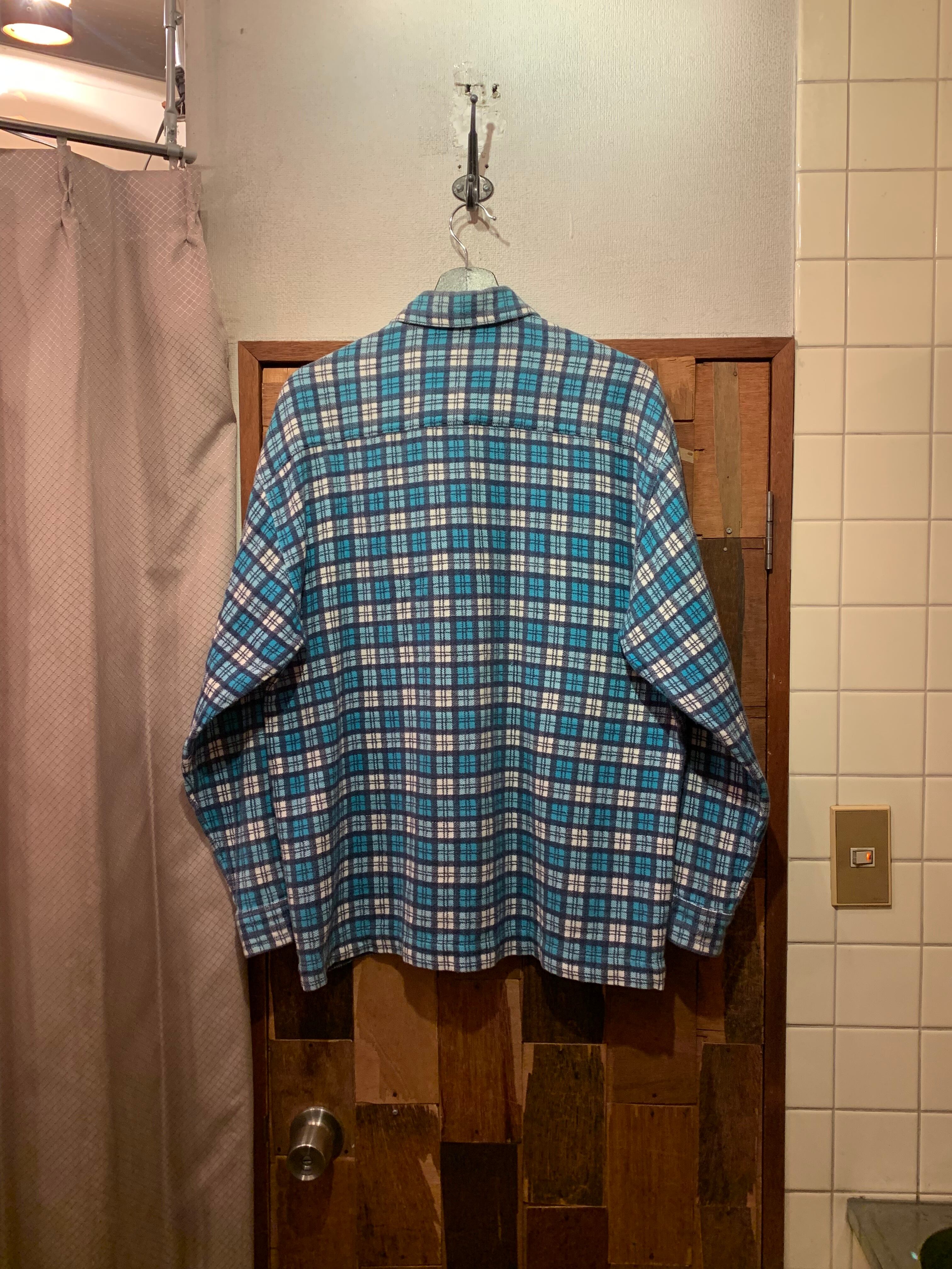 “MCD” turquoise blue×white×navy cotton check pattern L/S shirt