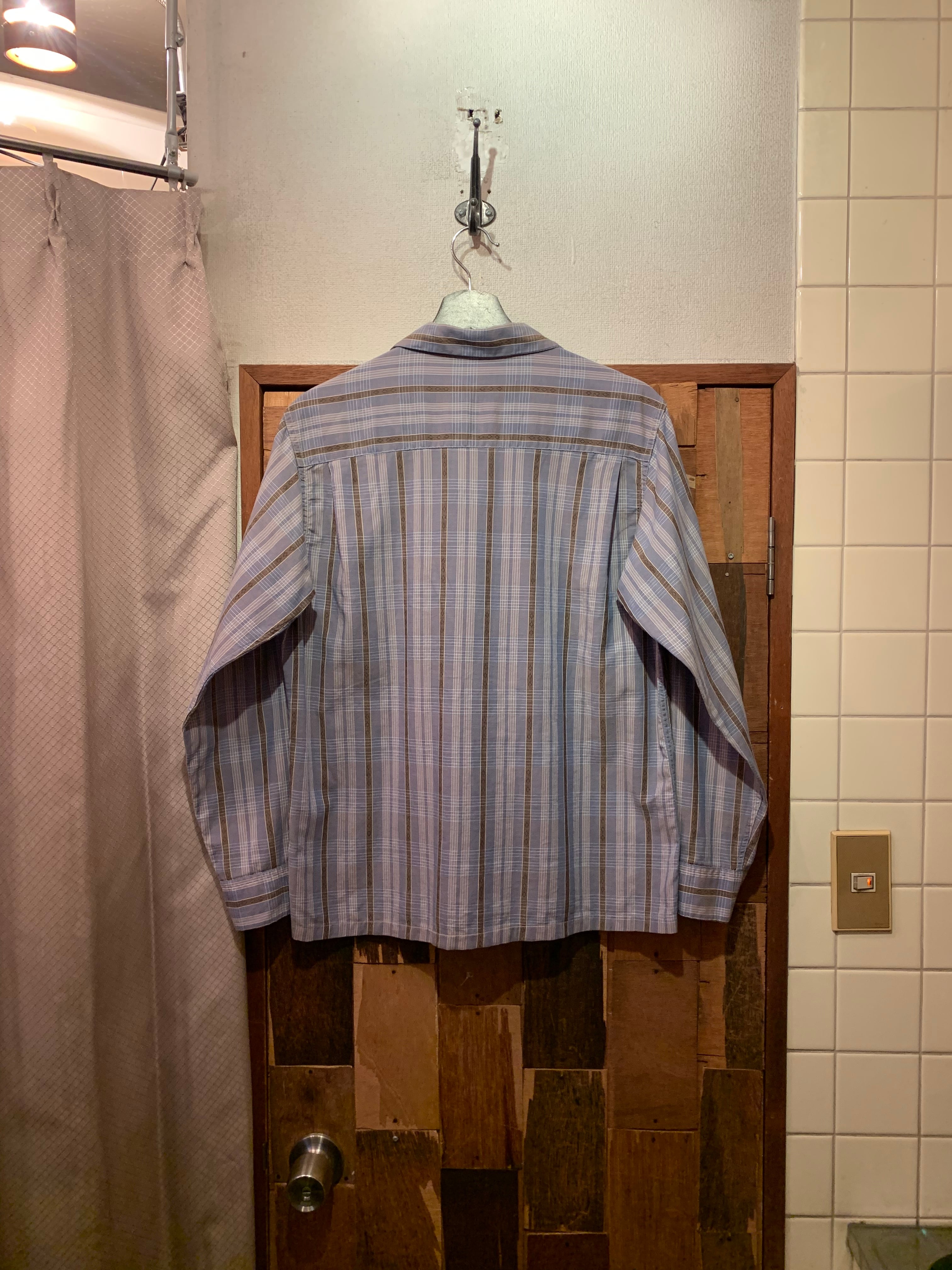 “Elbeco” 60’s vintage lavender blue repeating pattern L/S open-collar shirt