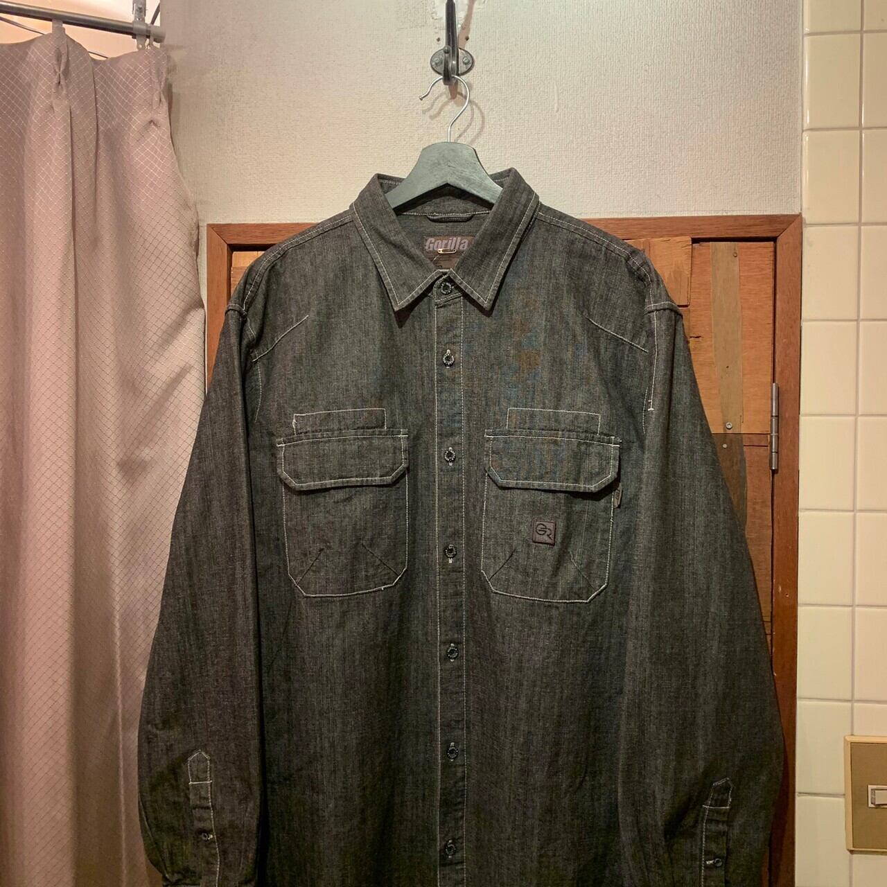 “Gorilla” charcoal black cotton pocket design L/S denim shirt JKT