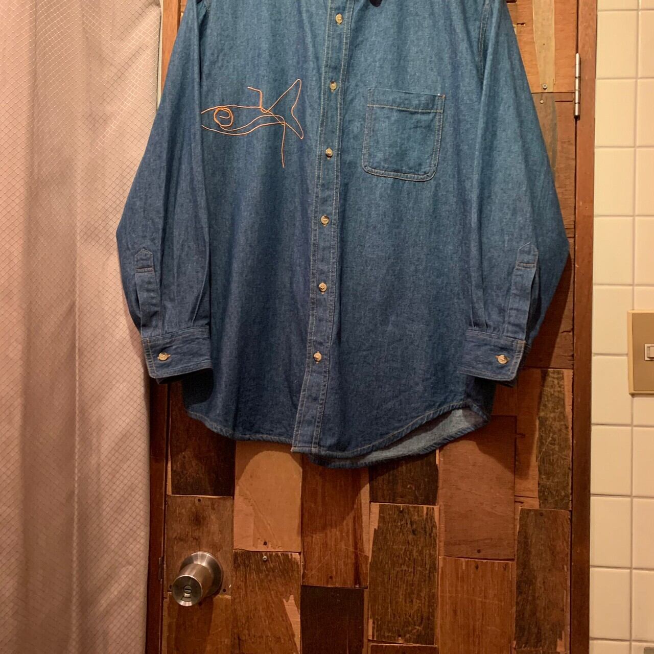 “BELL TOWN” indigo cotton embroidery design L/S denim shirt