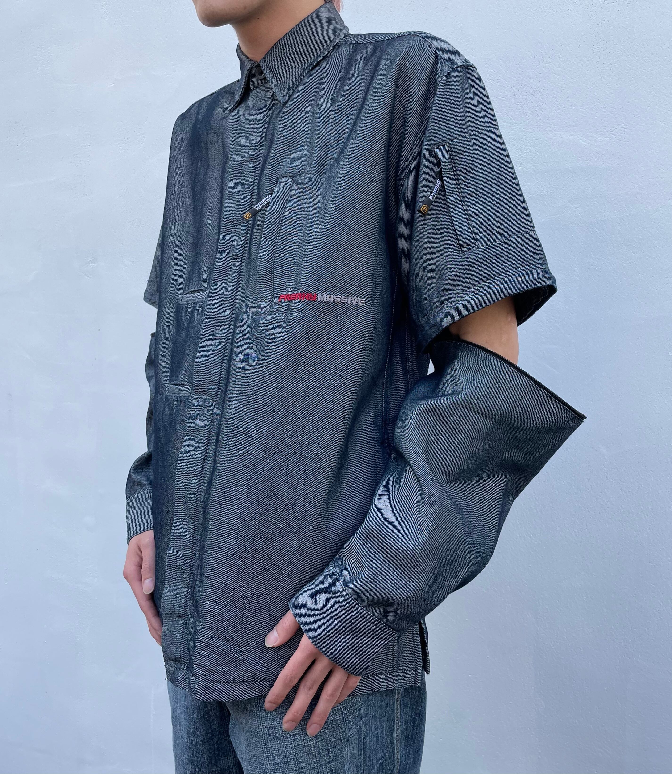 “FRERKY MASSIVE” shining gray cotton/poly detachable design multi pocket L/S shirt jacket