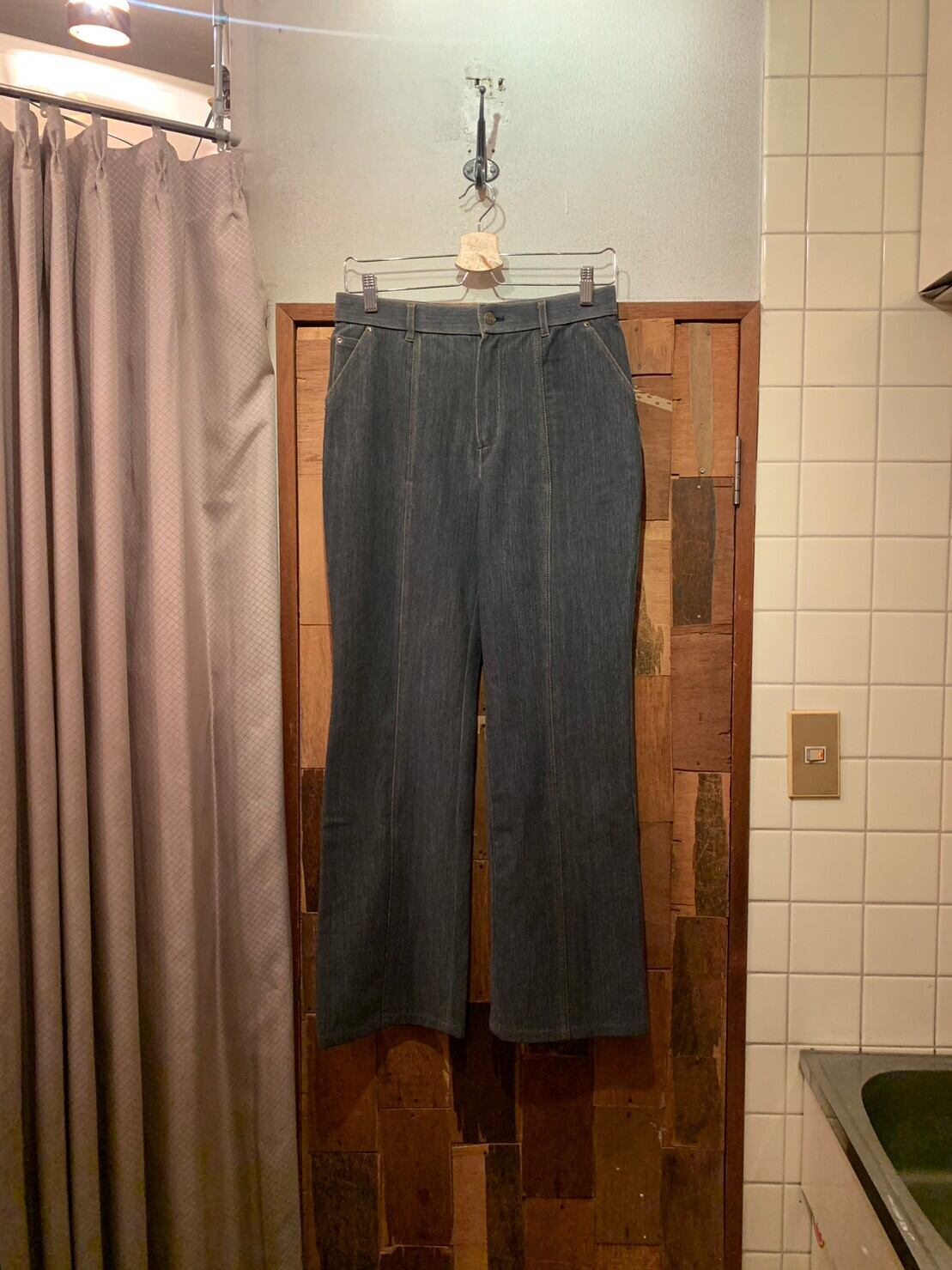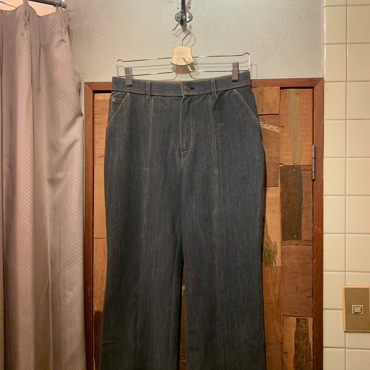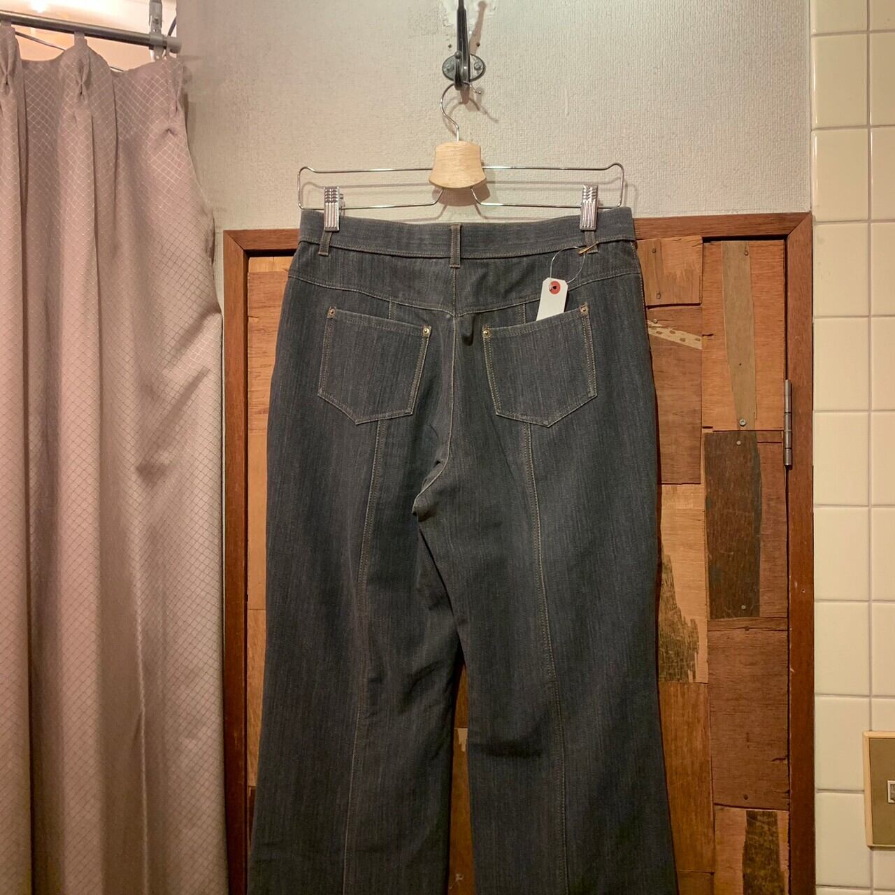 “PINOT NOIR” charcoal black nylon/poly urethane design flare pants