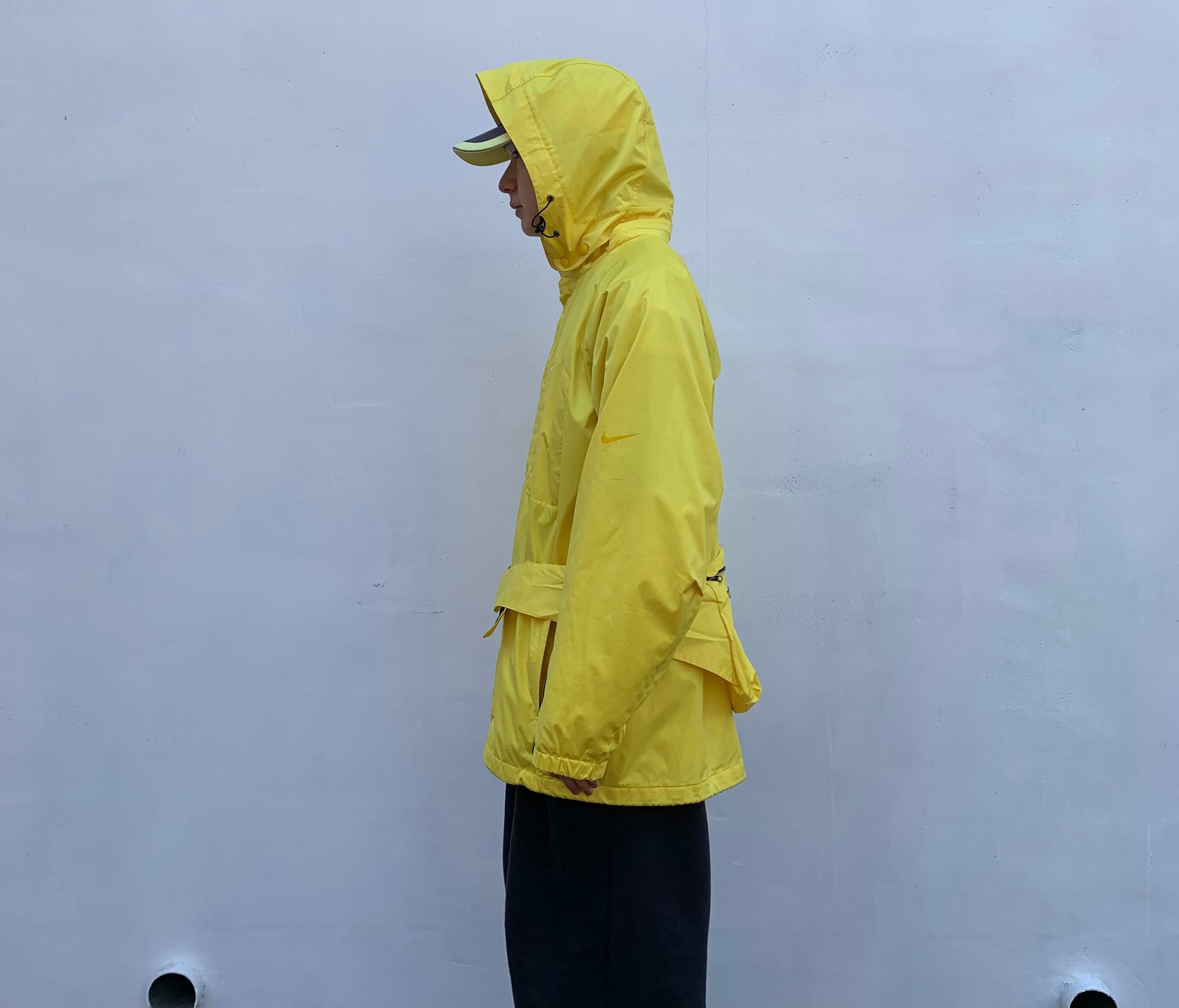 “NIKE” 01’s yellow polyester packable design hooded jacket