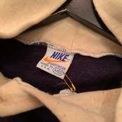 “NIKE” 70’s~80’s dark navy×beige logo printed hoodie