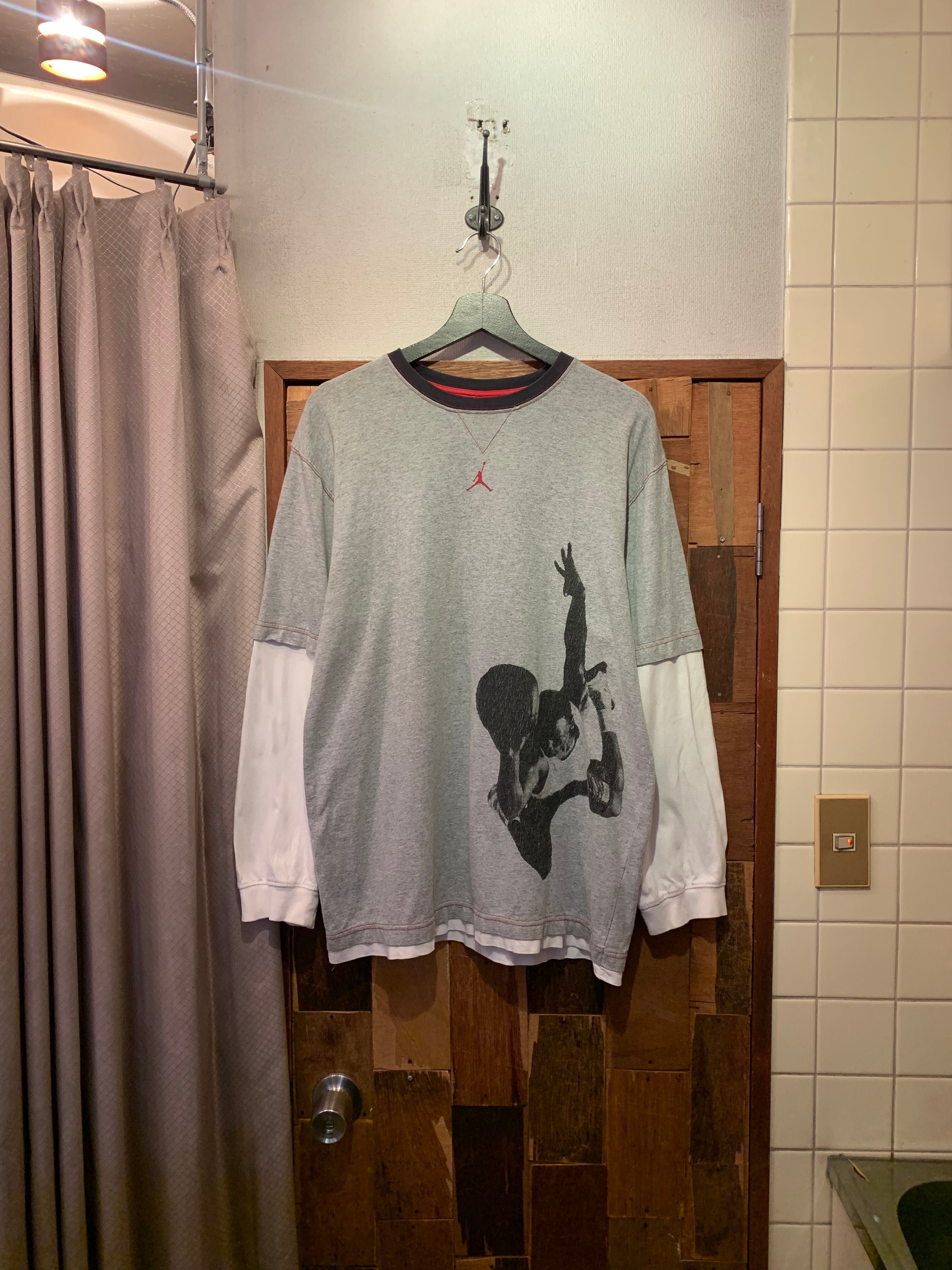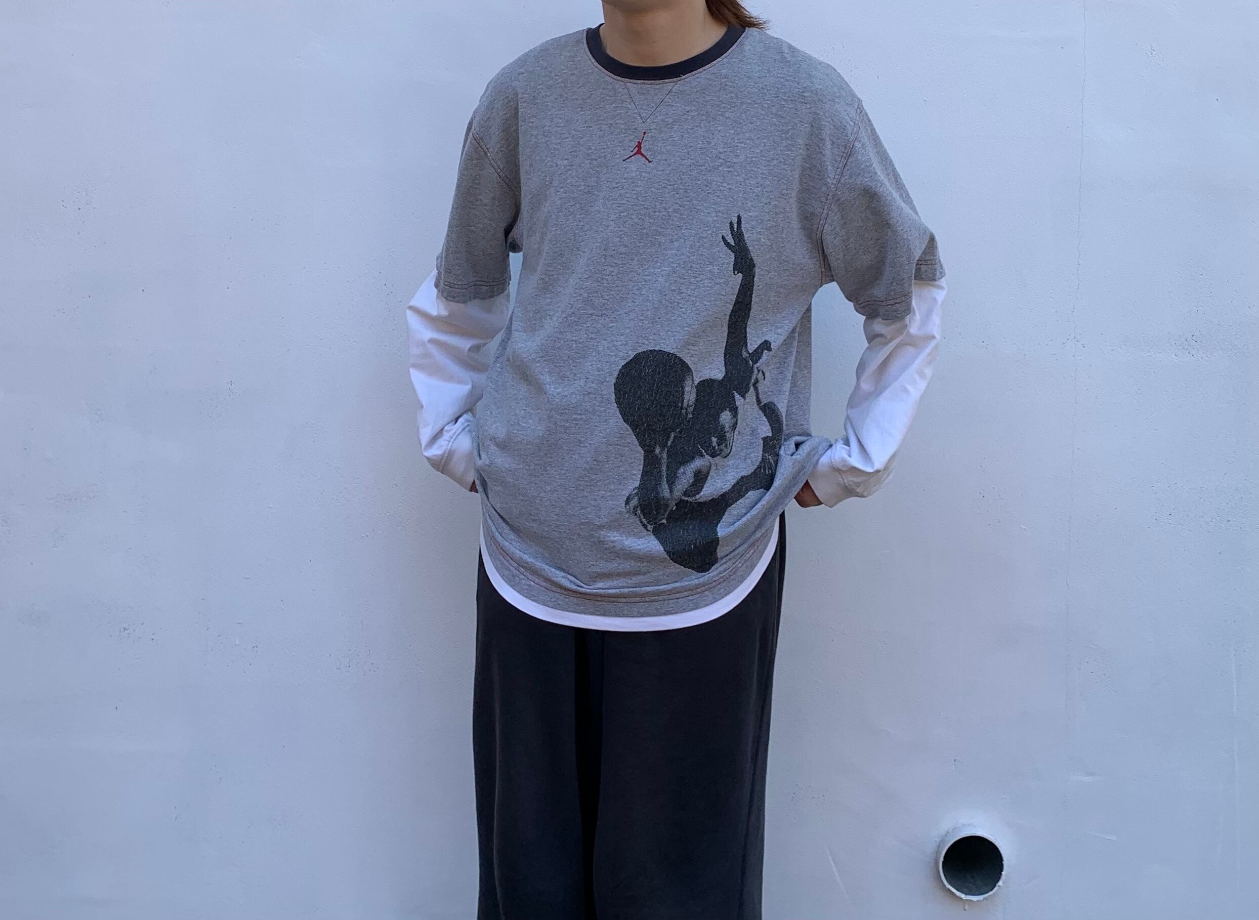 “NIKE” 「AIR JORDAN」 gray base cotton/poly layered design L/S tee