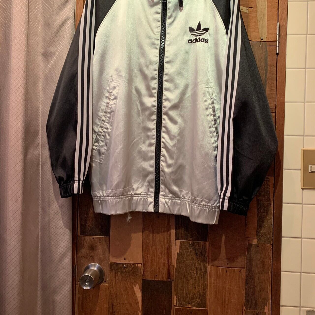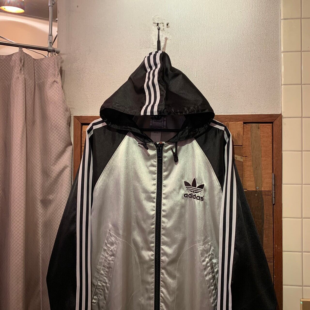 “adidas” black×gray nylon logo&line design zip-up hoodie