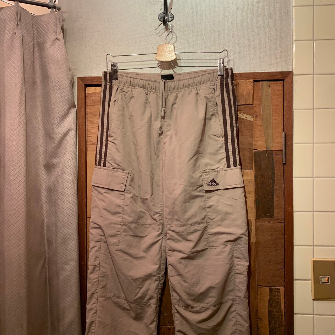 “adidas” 07’s beige nylon/poly line&logo design cargo pants