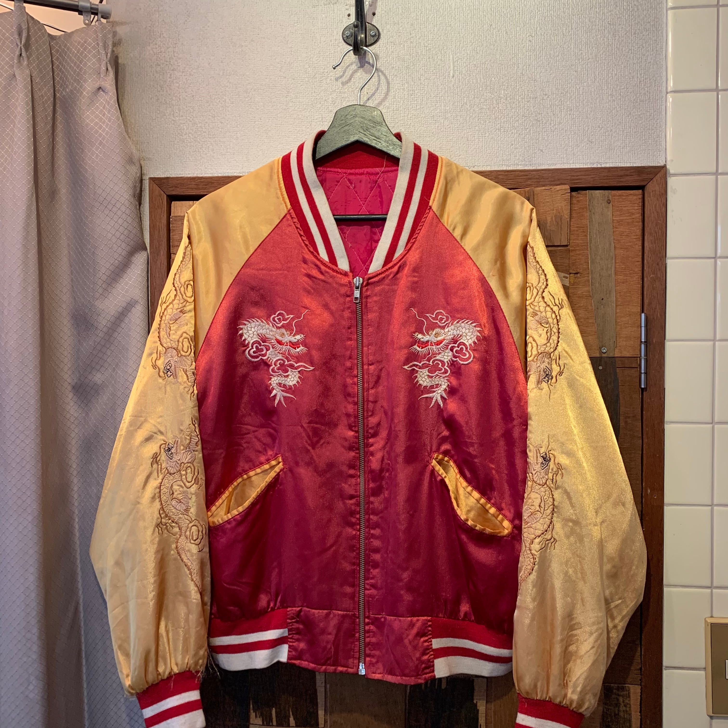 “brand unknown” red×gold embroidery design souvenir jacket not reversible