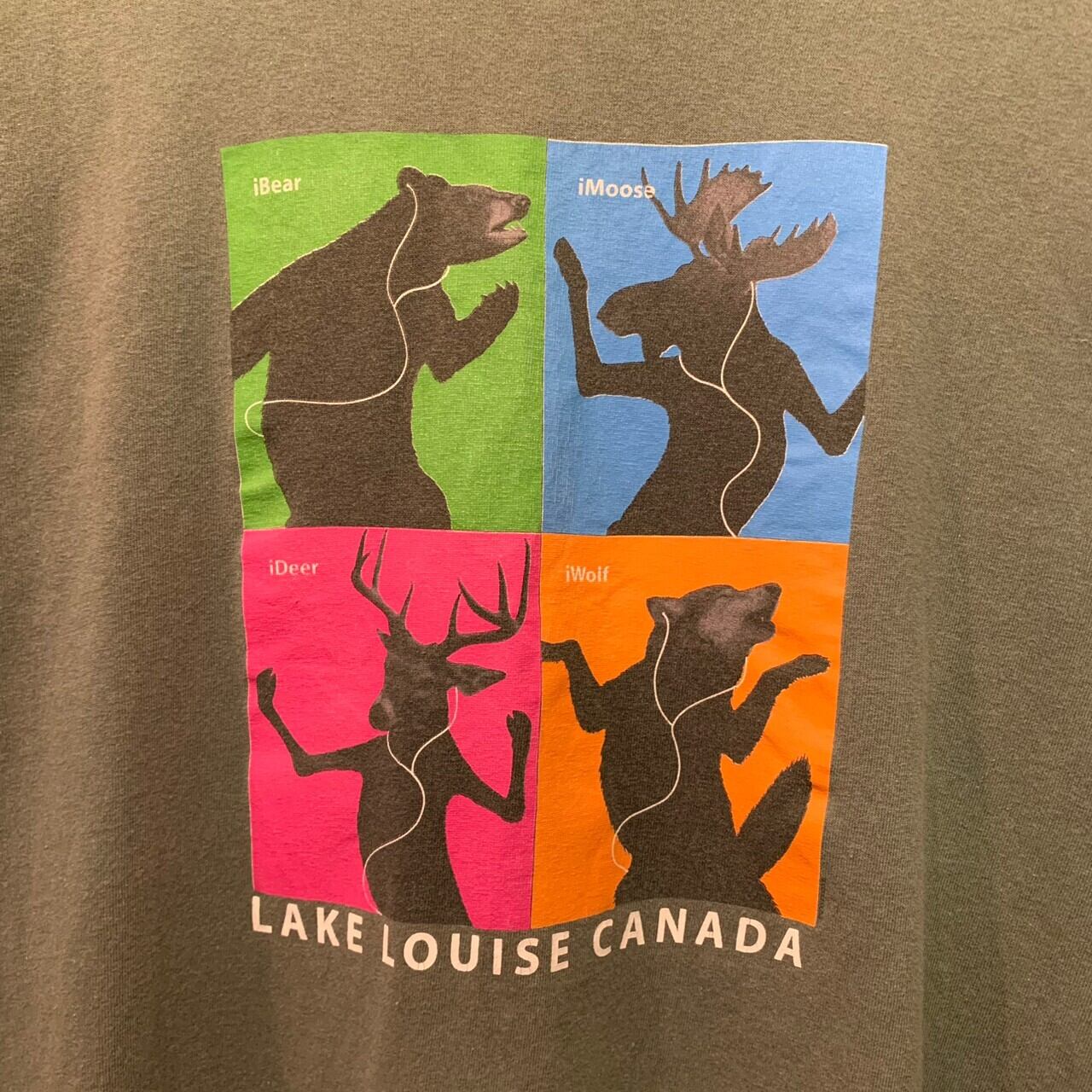 “GILDAN” i-podパロディ khaki cotton printed S/S Tee