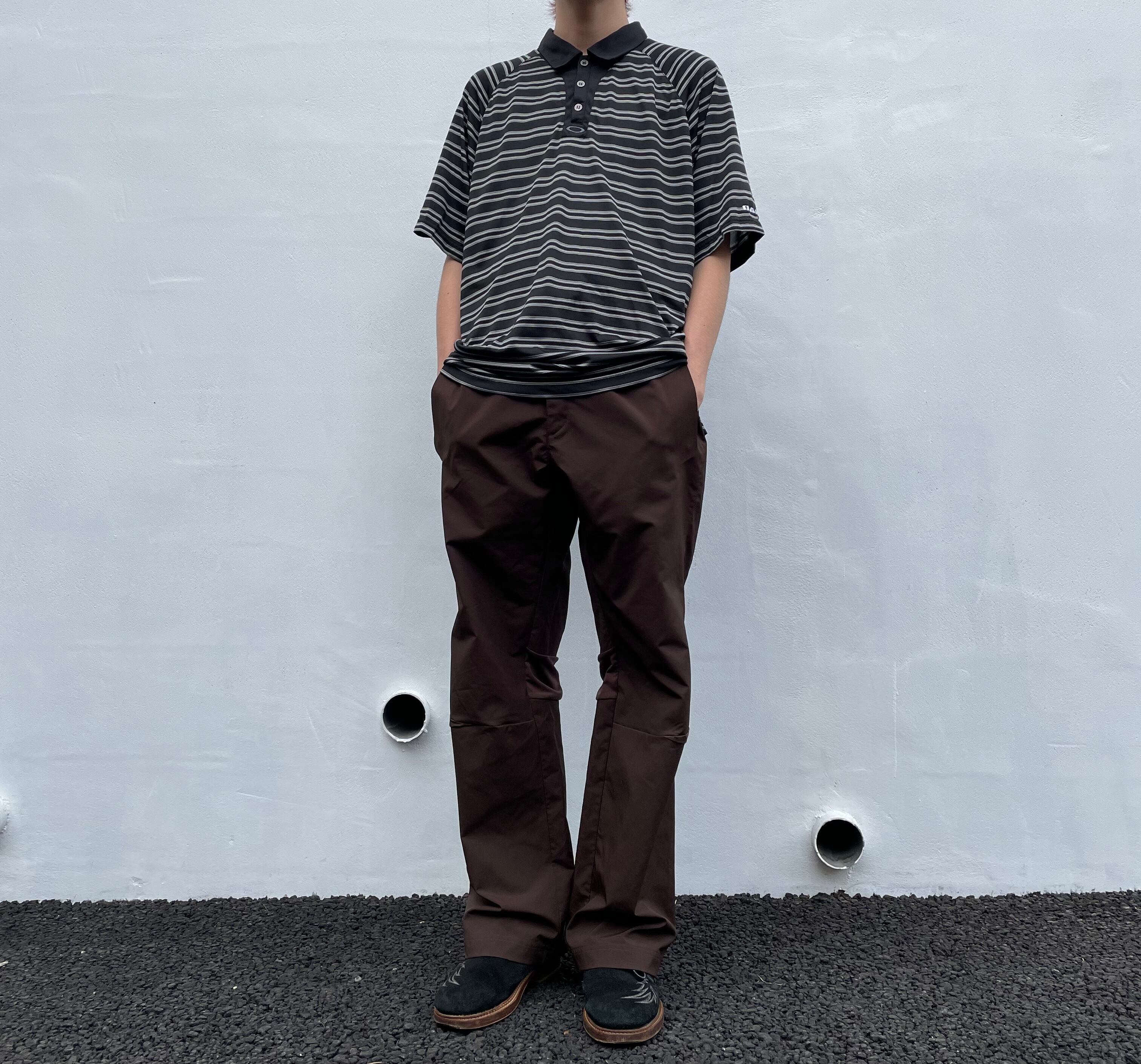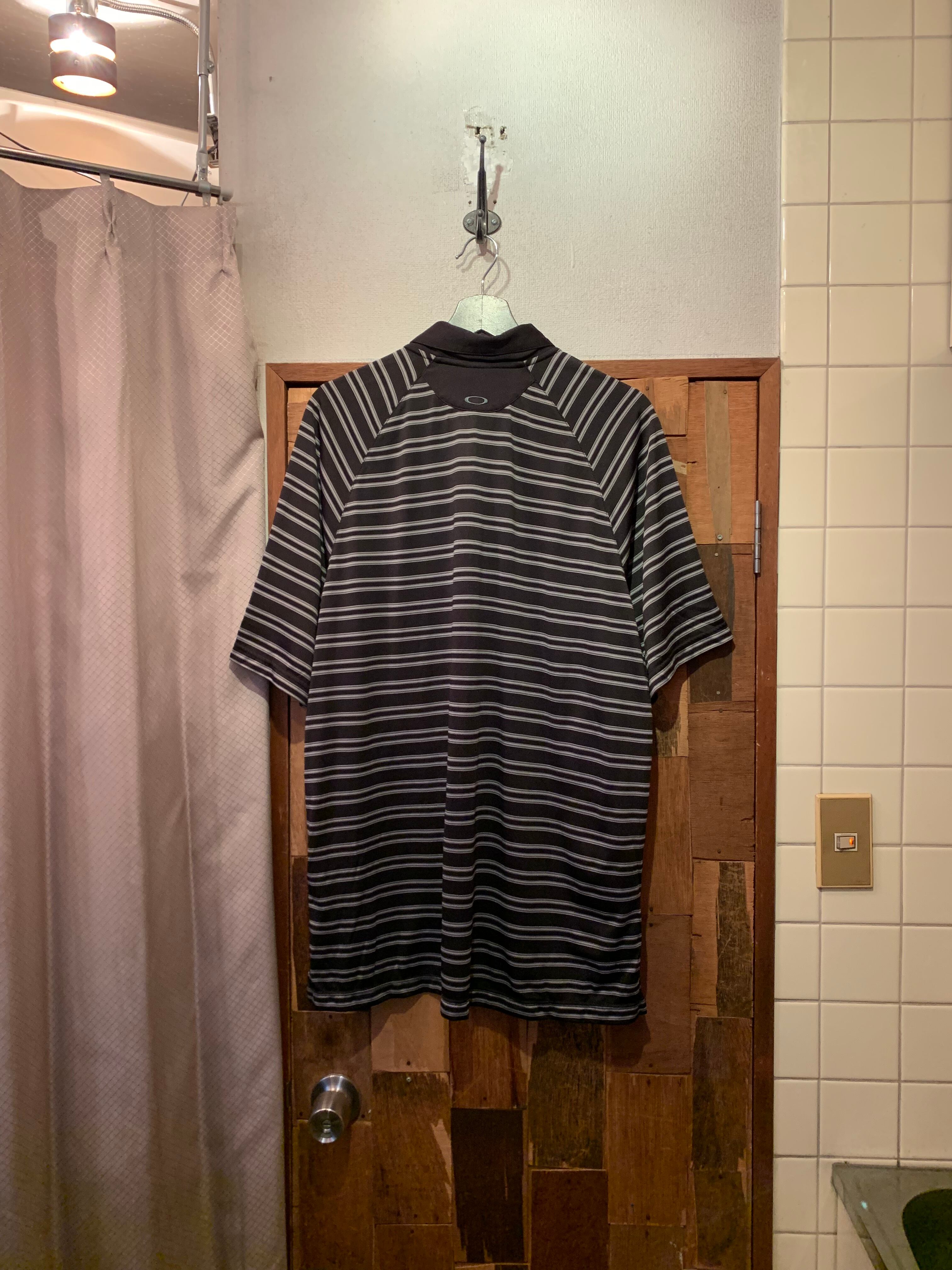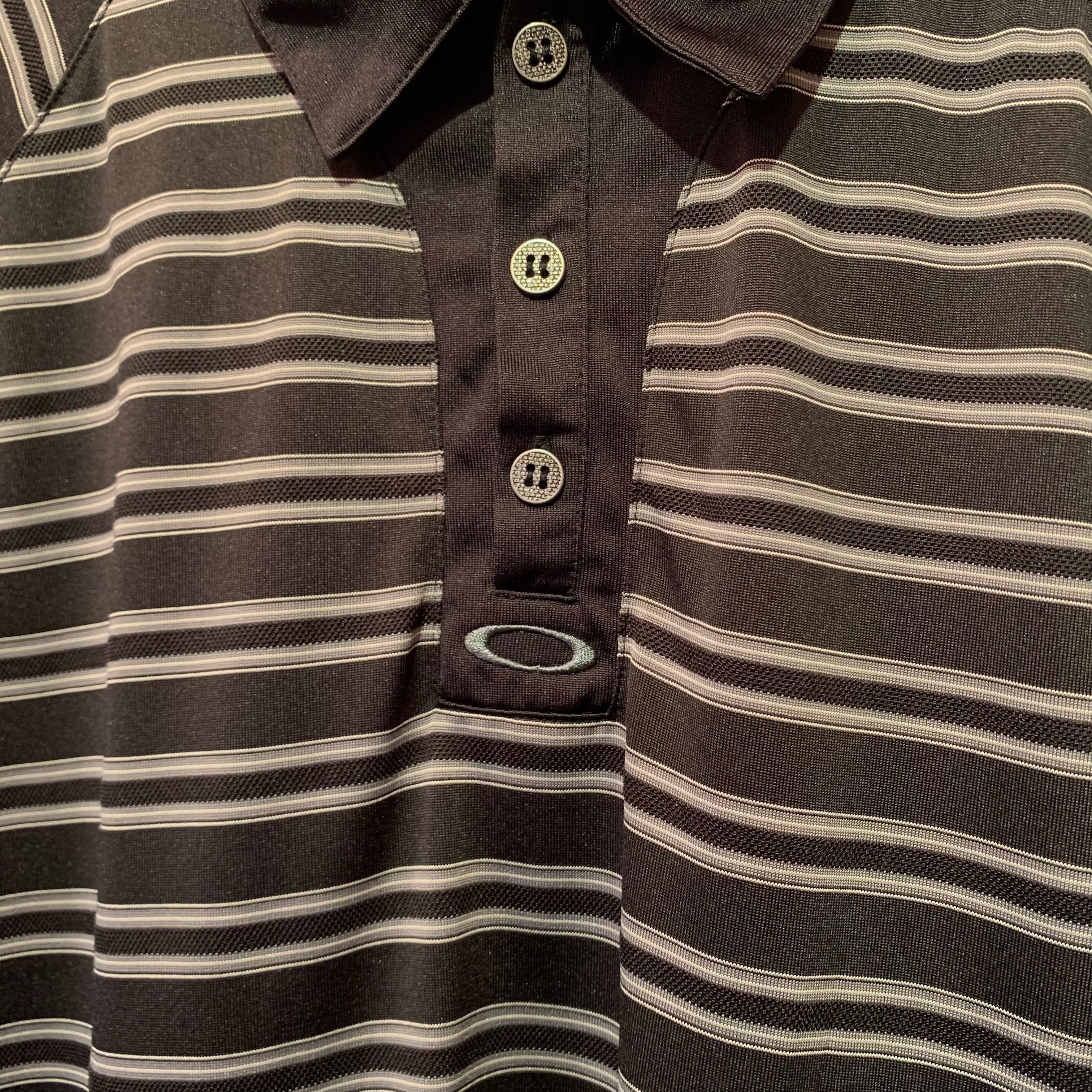 “OAKLEY” 08’s black×gray polyester border pattern S/S polo shirt