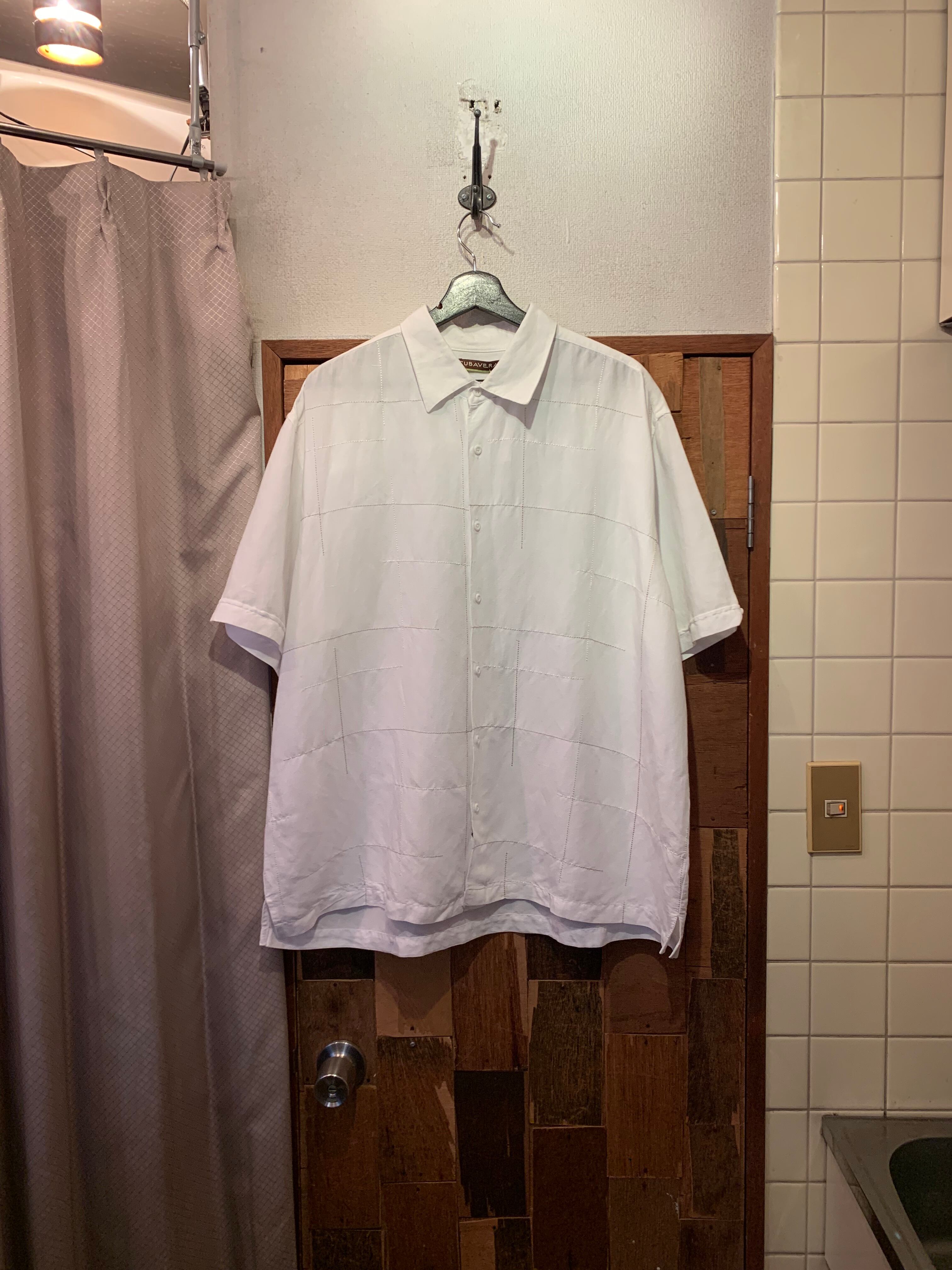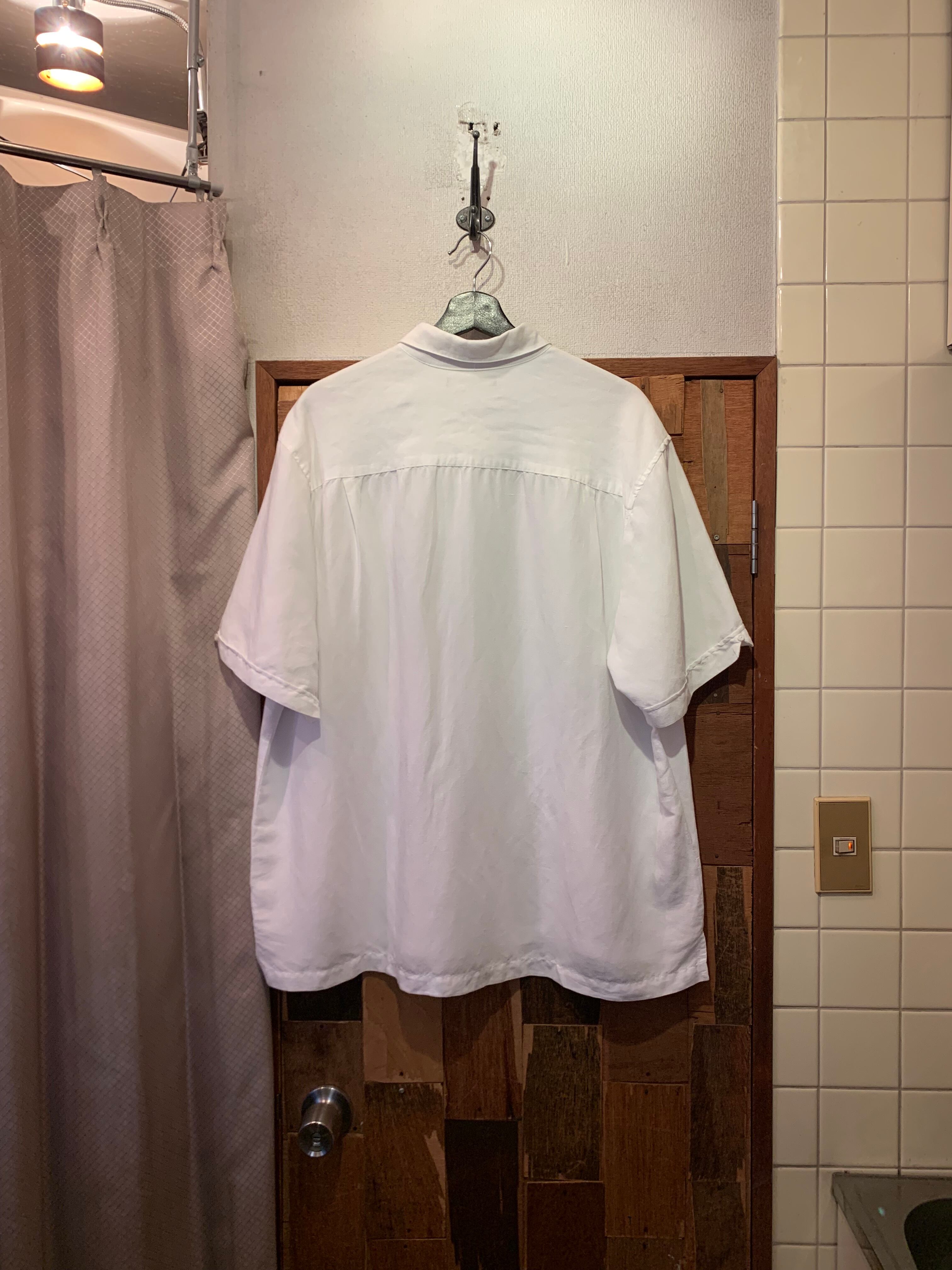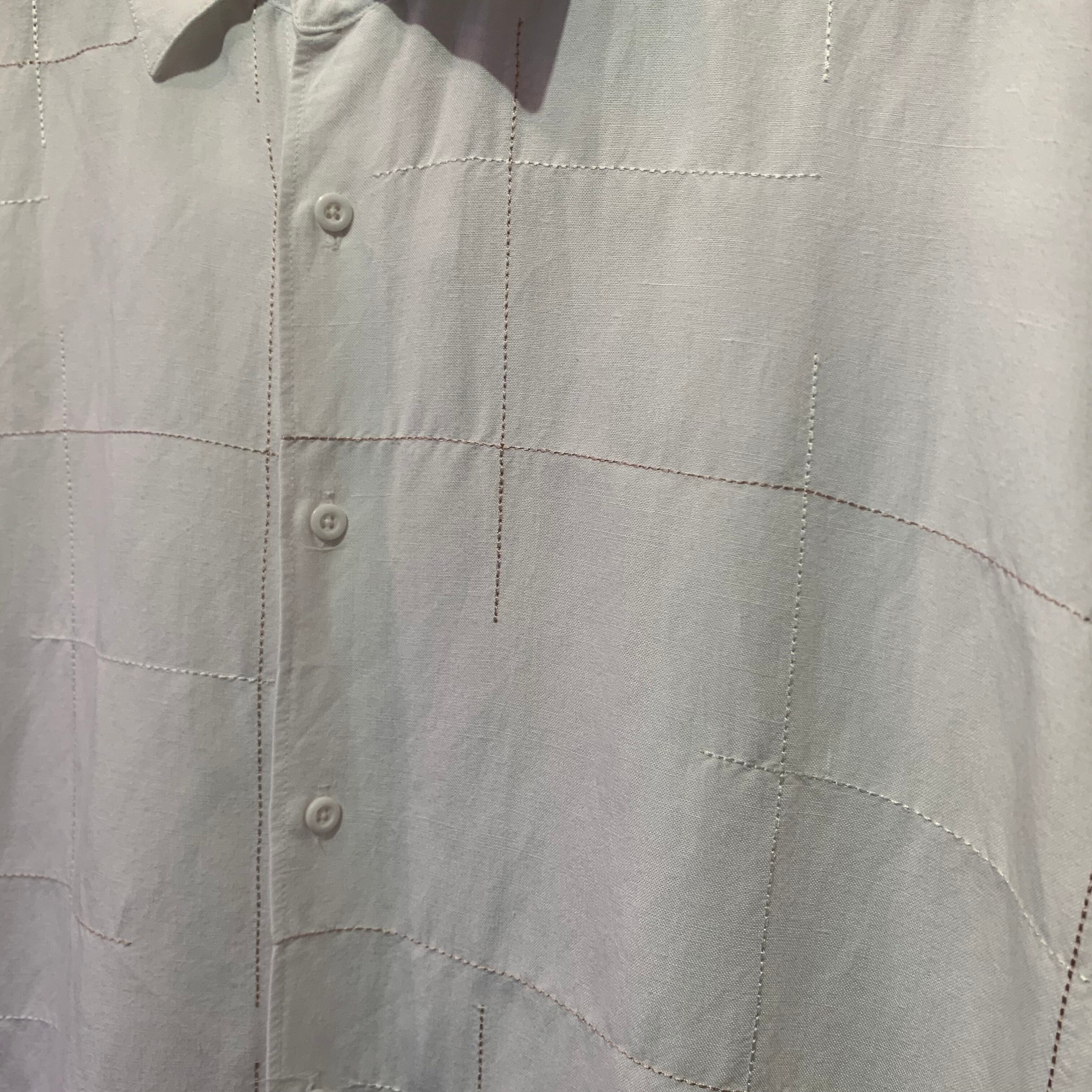 “CUBAVERA” white ramie/rayon stitch design S/S shirt