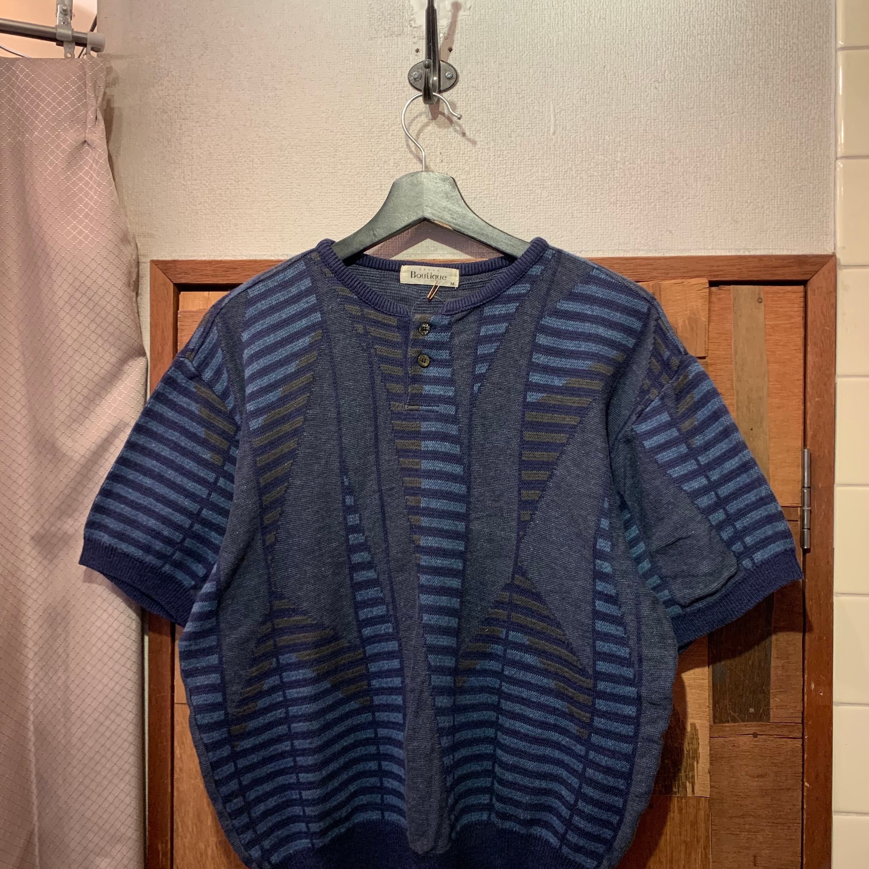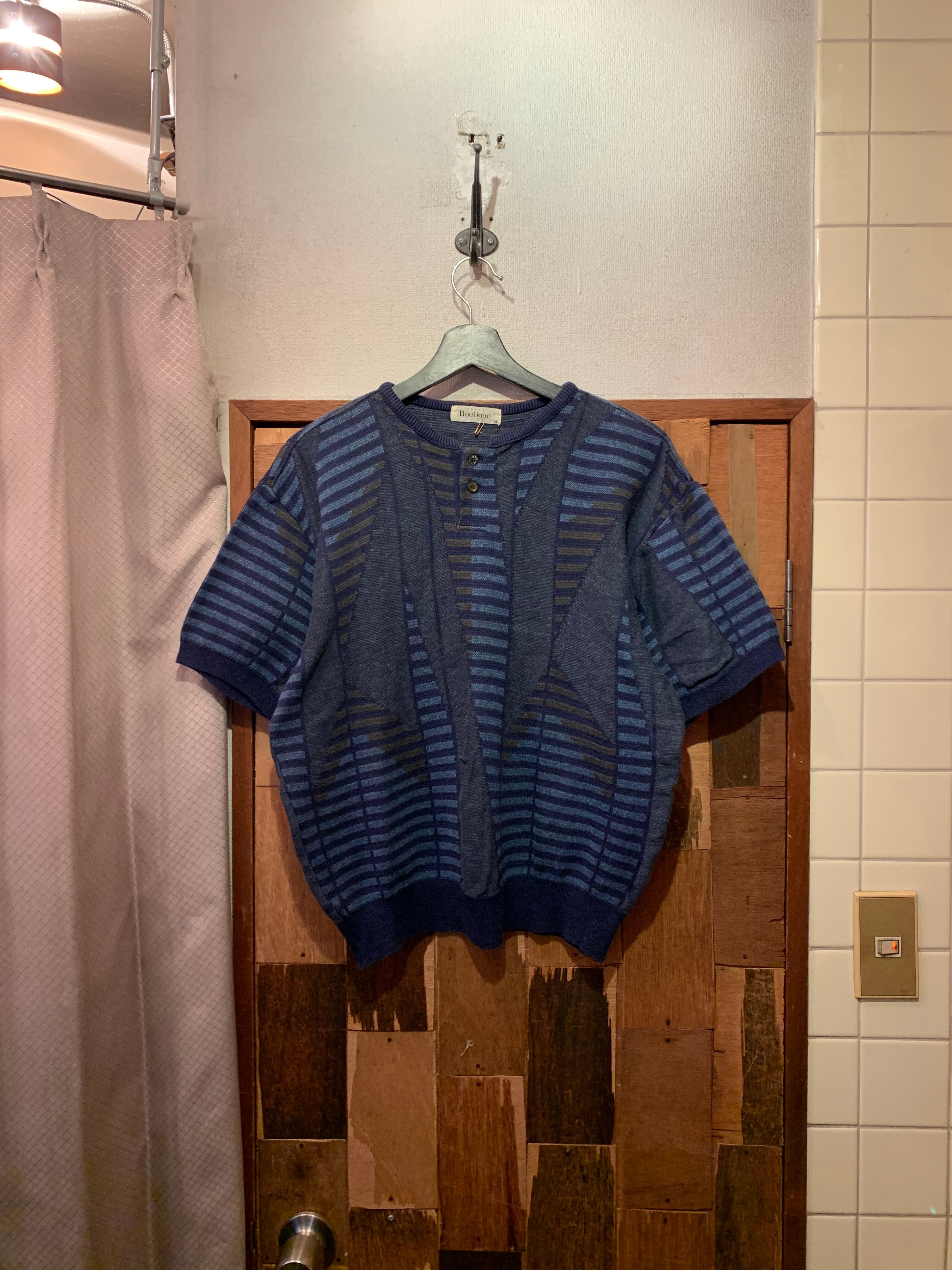 “Boutique” navy cotton unique pattern S/S knit