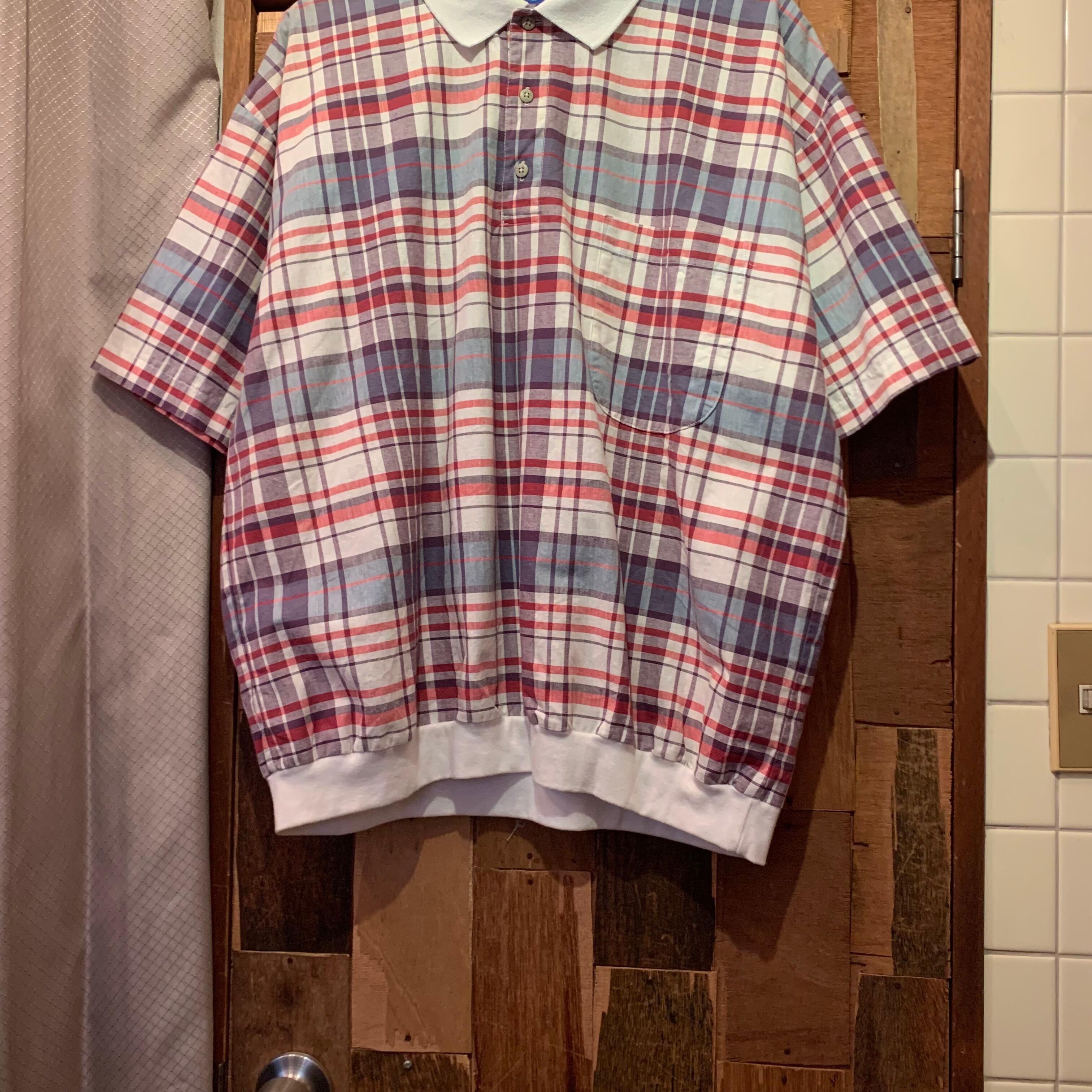 “JANTZEN” white base cotton check pattern S/S polo shirt made in USA