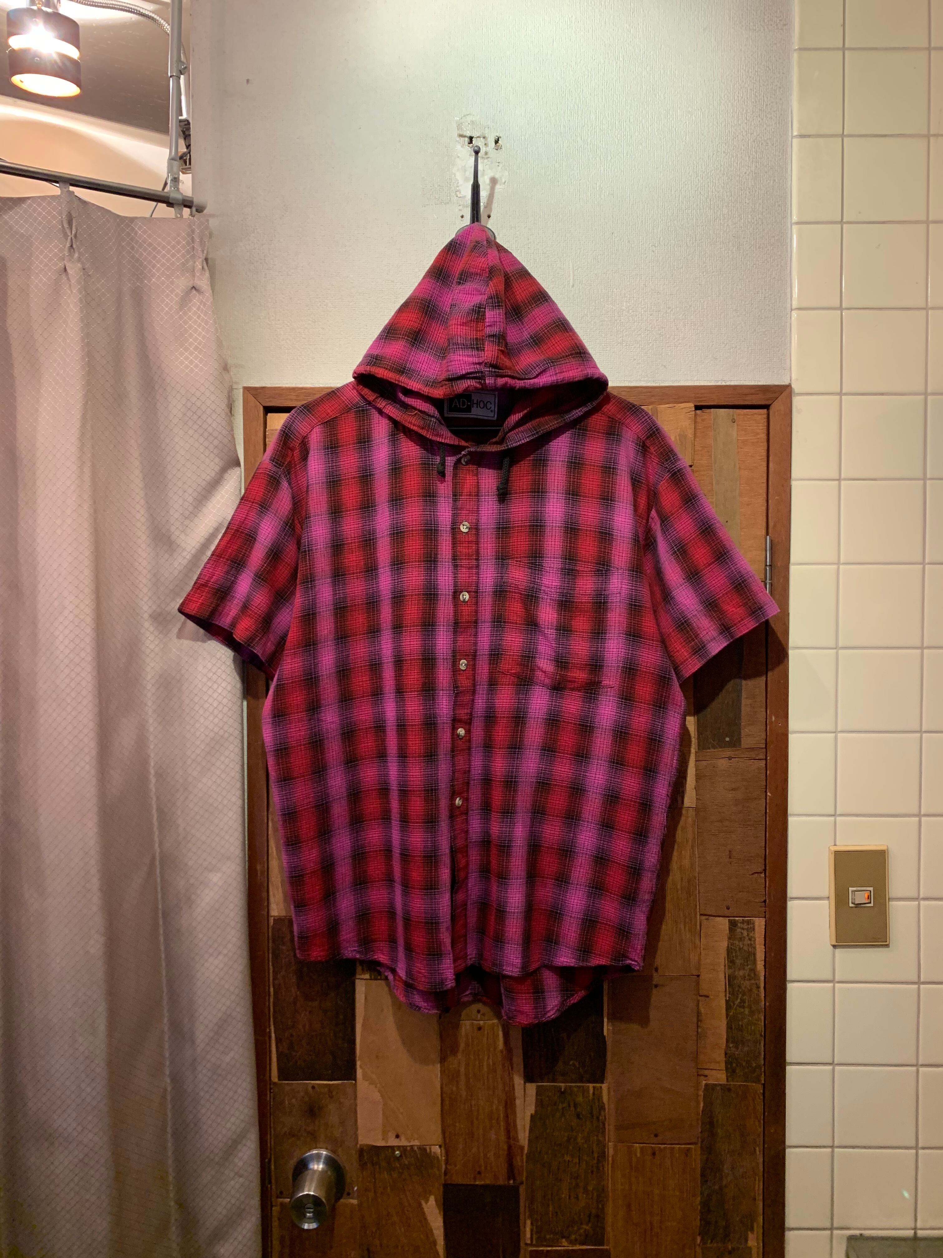 “AD-HOC” pink×red×black cotton check pattern S/S shirt hoodie
