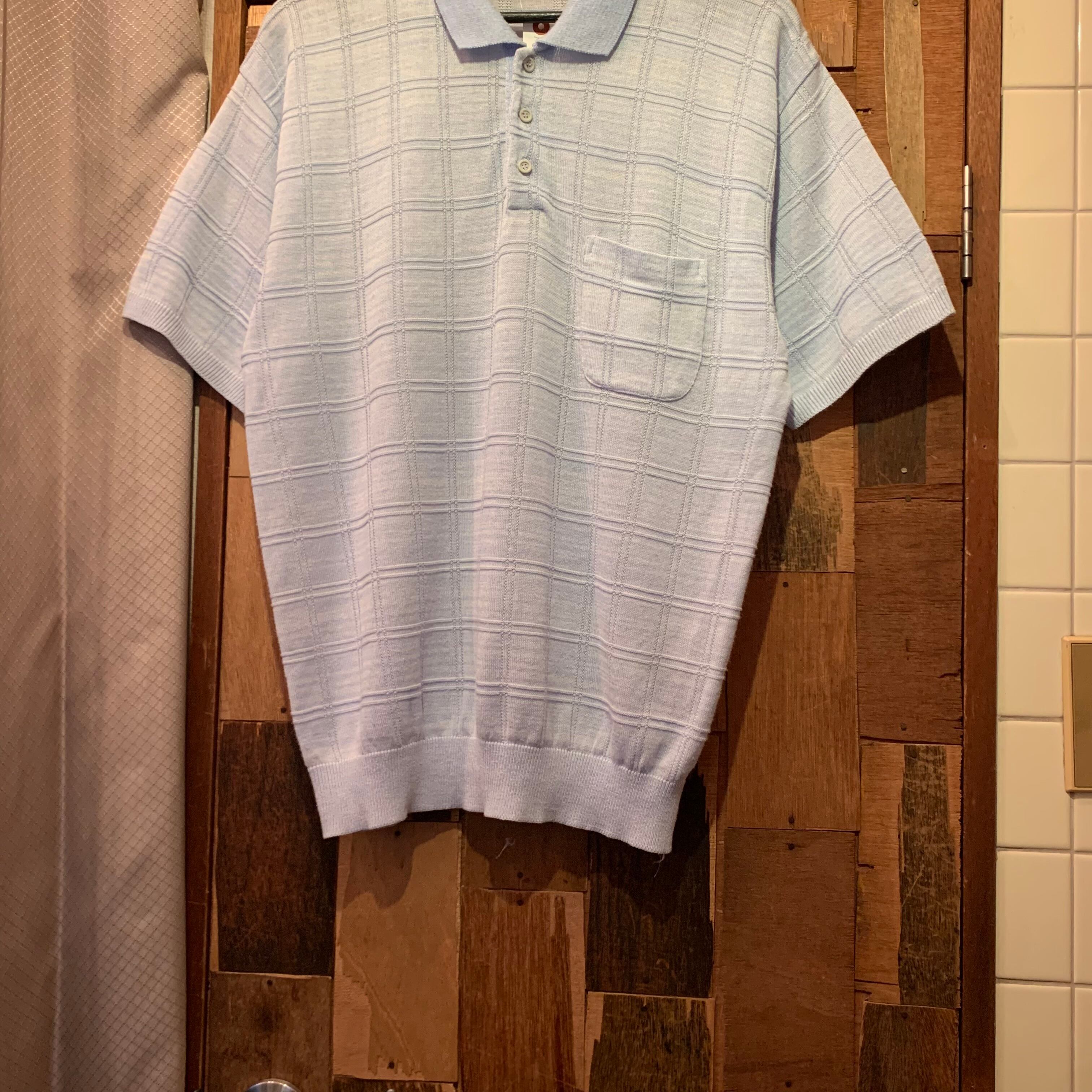 “KOSUGI” light blue repeating pattern S/S knit polo shirt