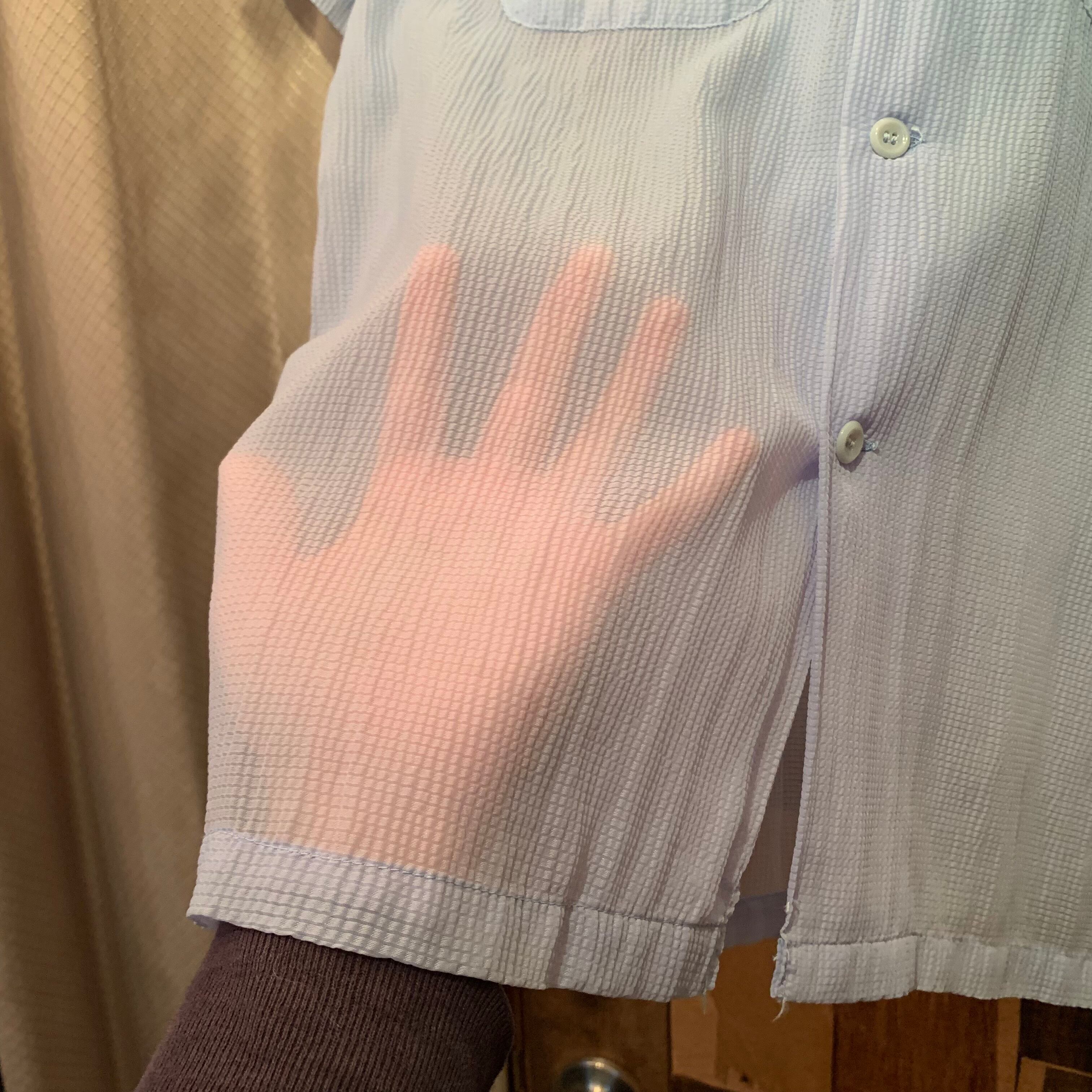 “pilgrim” 40’s~50’s vintage lavender blue nylon S/S see-through open-collar shirt