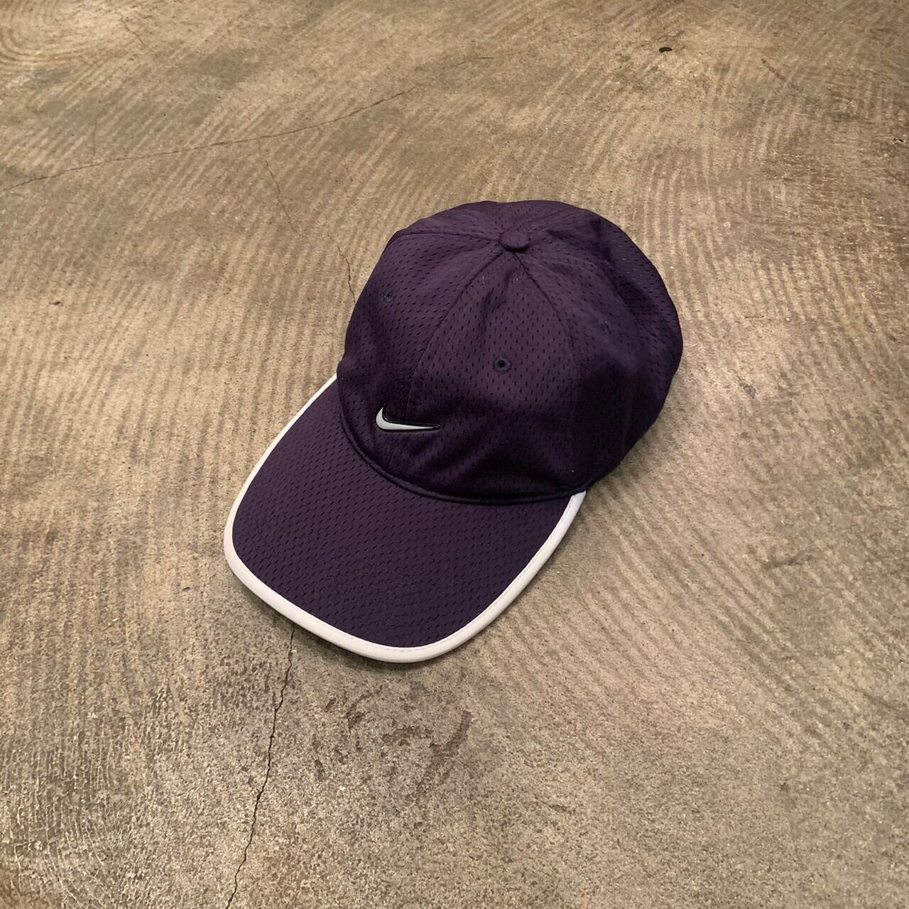 “NIKE” 00’s navy×white point logo design 6panel mesh cap