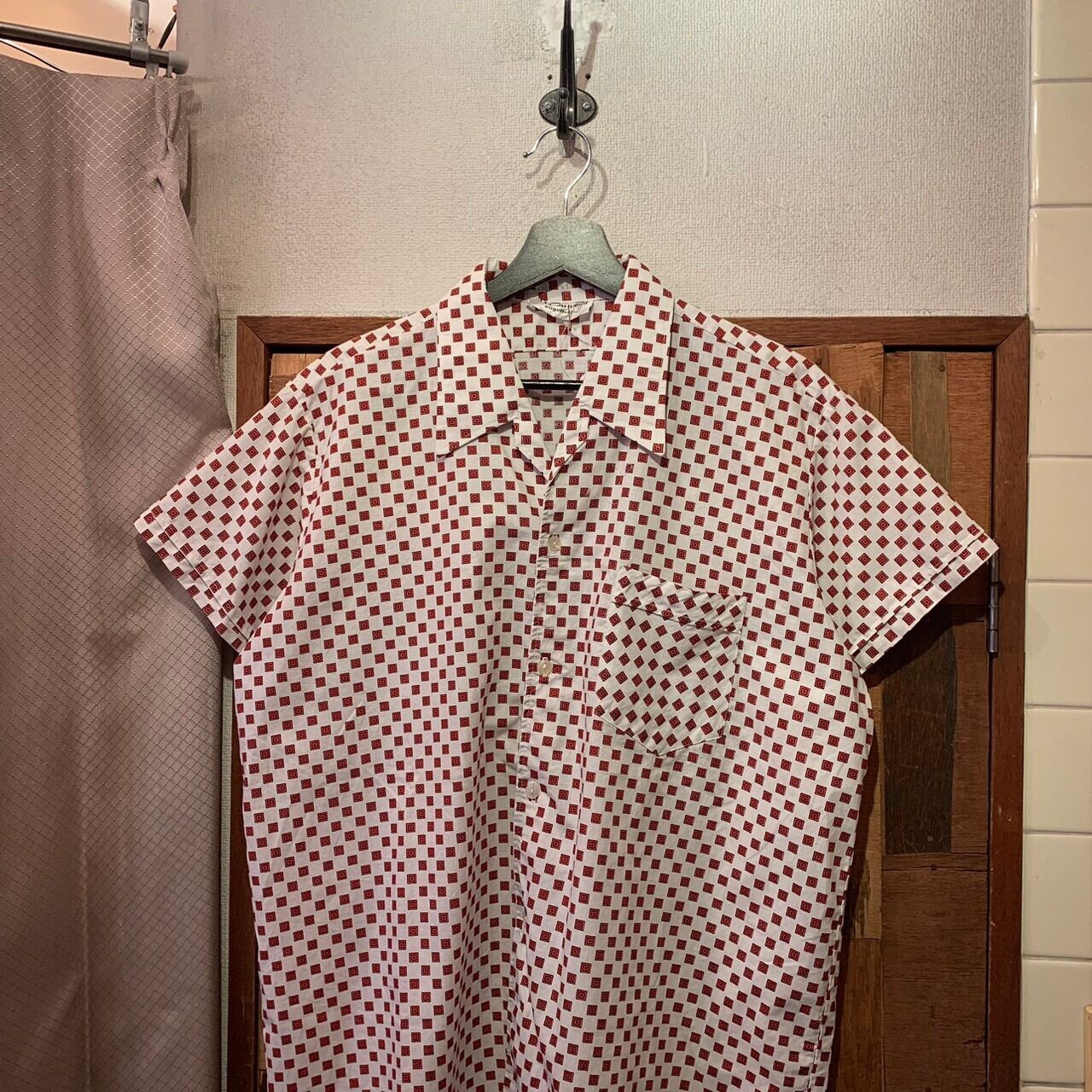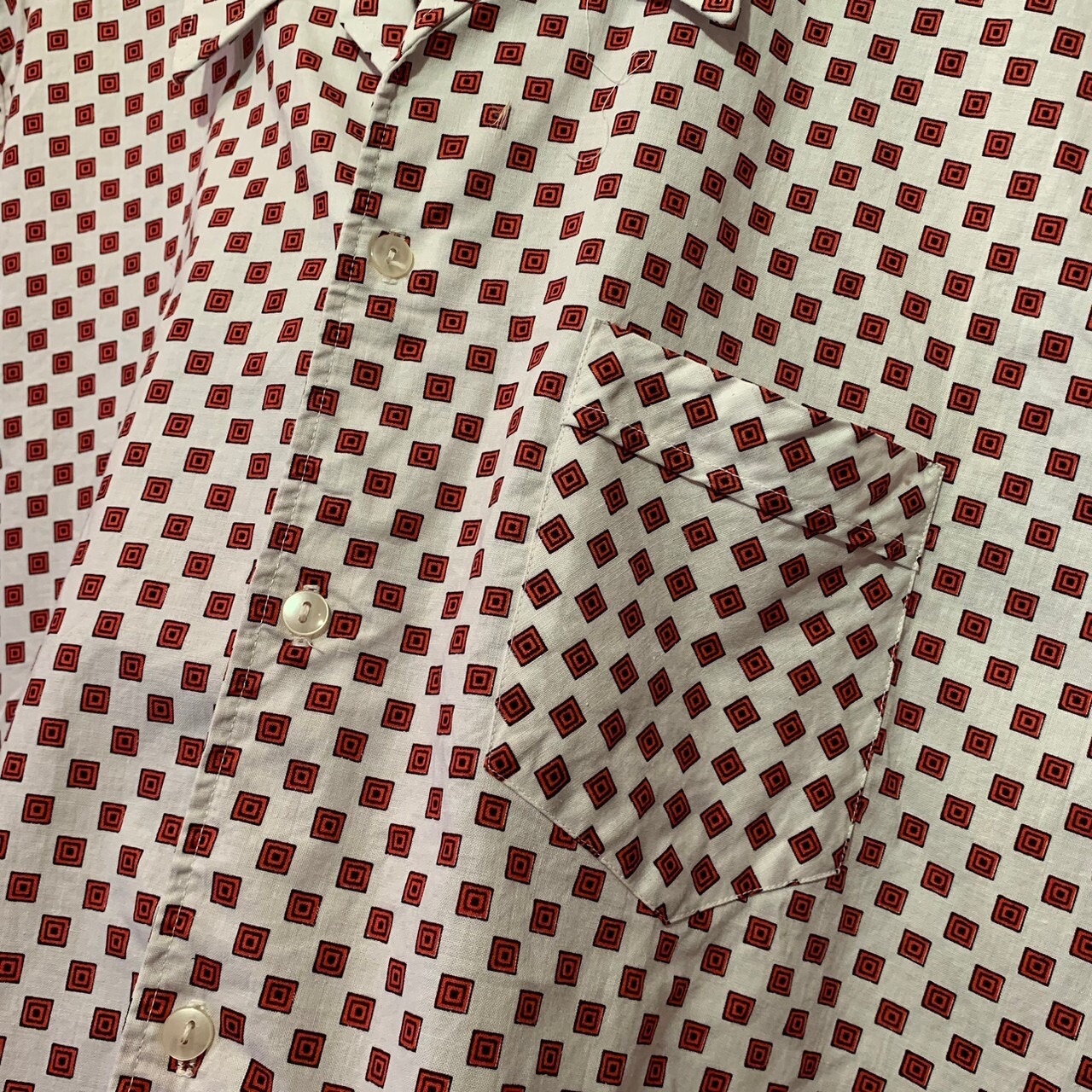 “BUGELFREI” 70’s white×red×black repeating pattern S/S open-collar shirt
