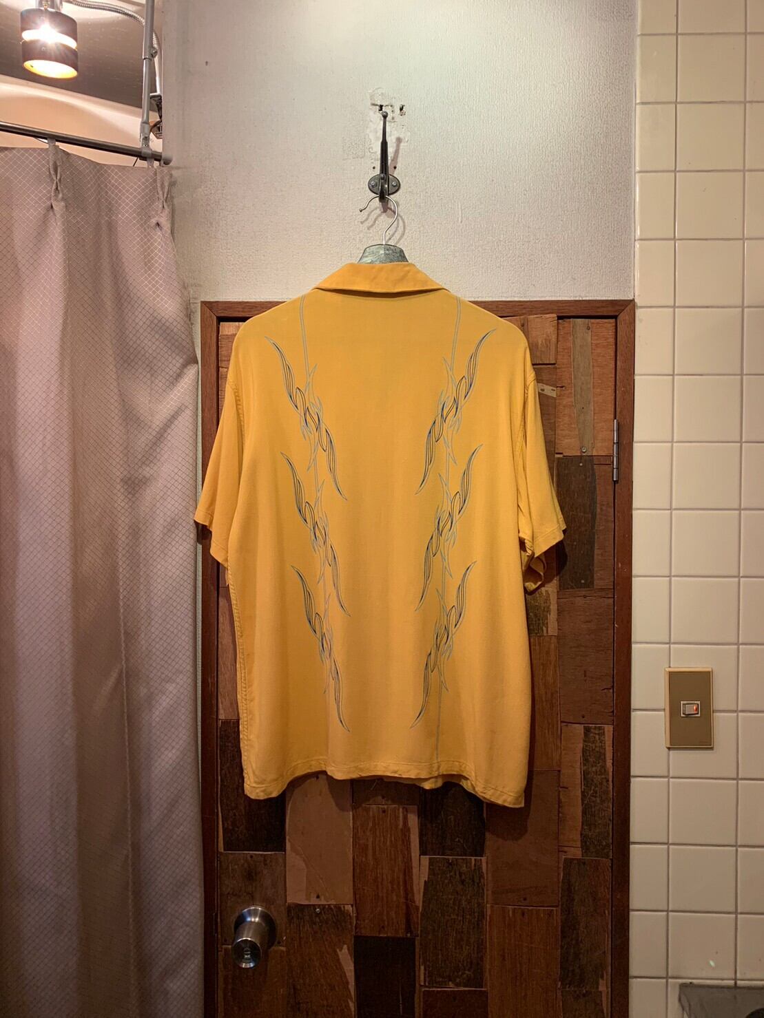 “pavl reed” yellow rayon design S/S open-collar shirt