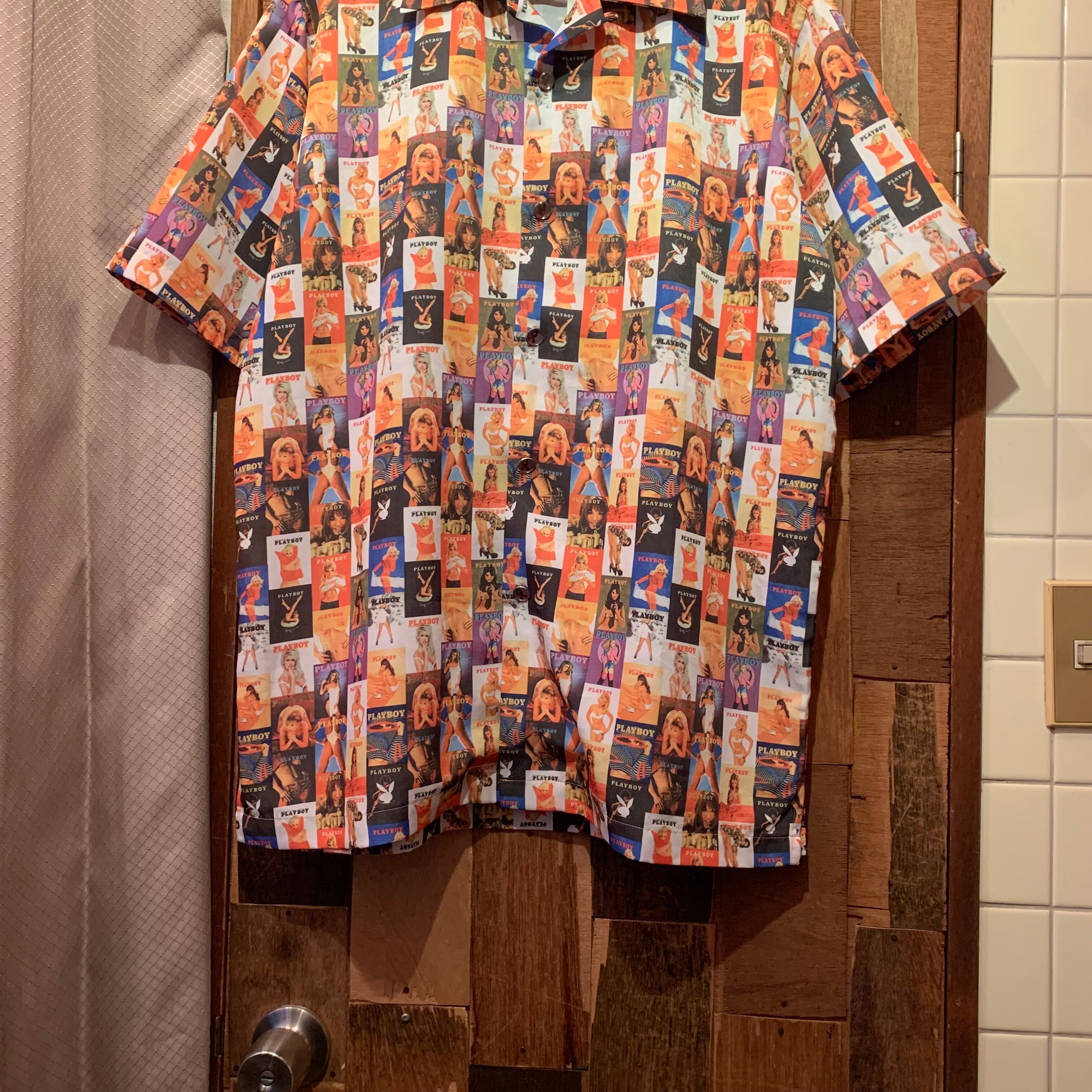 “PLAYBOY” 90’s multi color polyester nude pattern S/S open-collar shirt