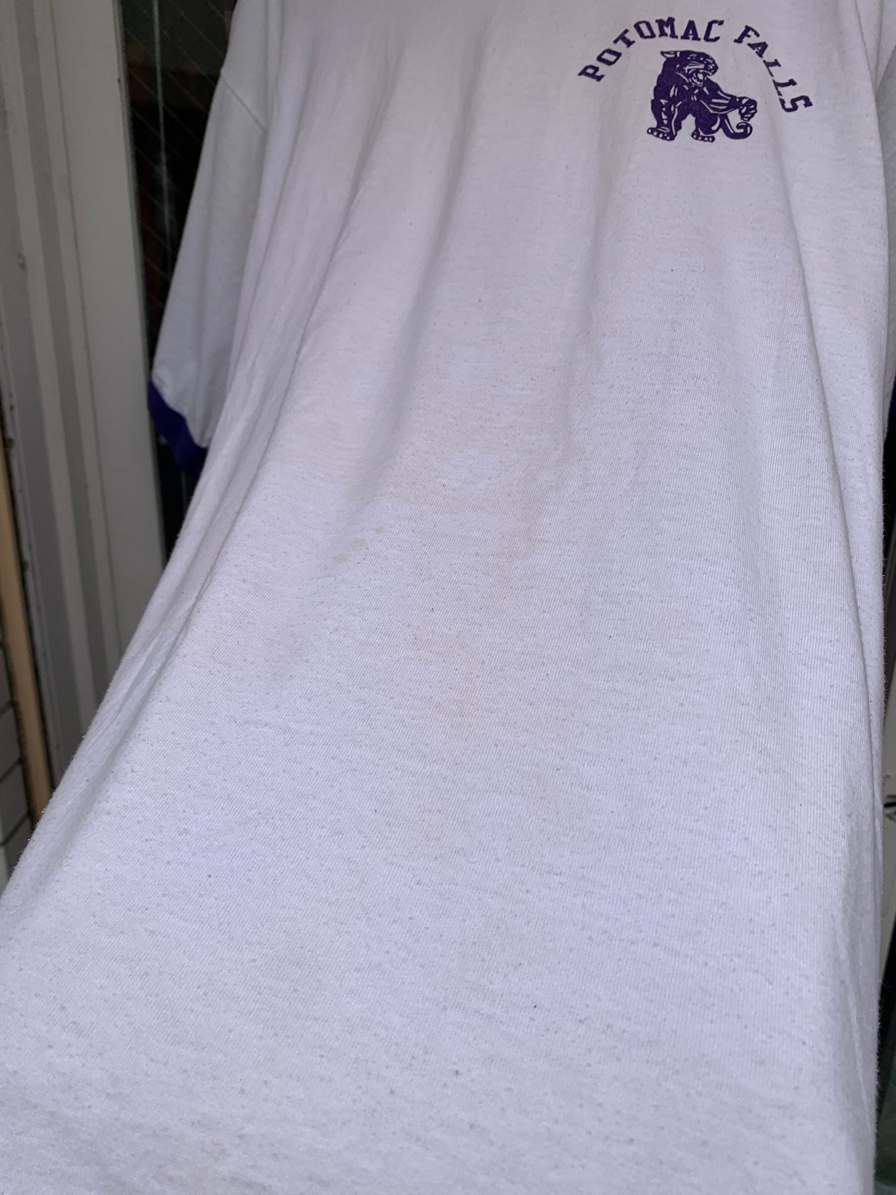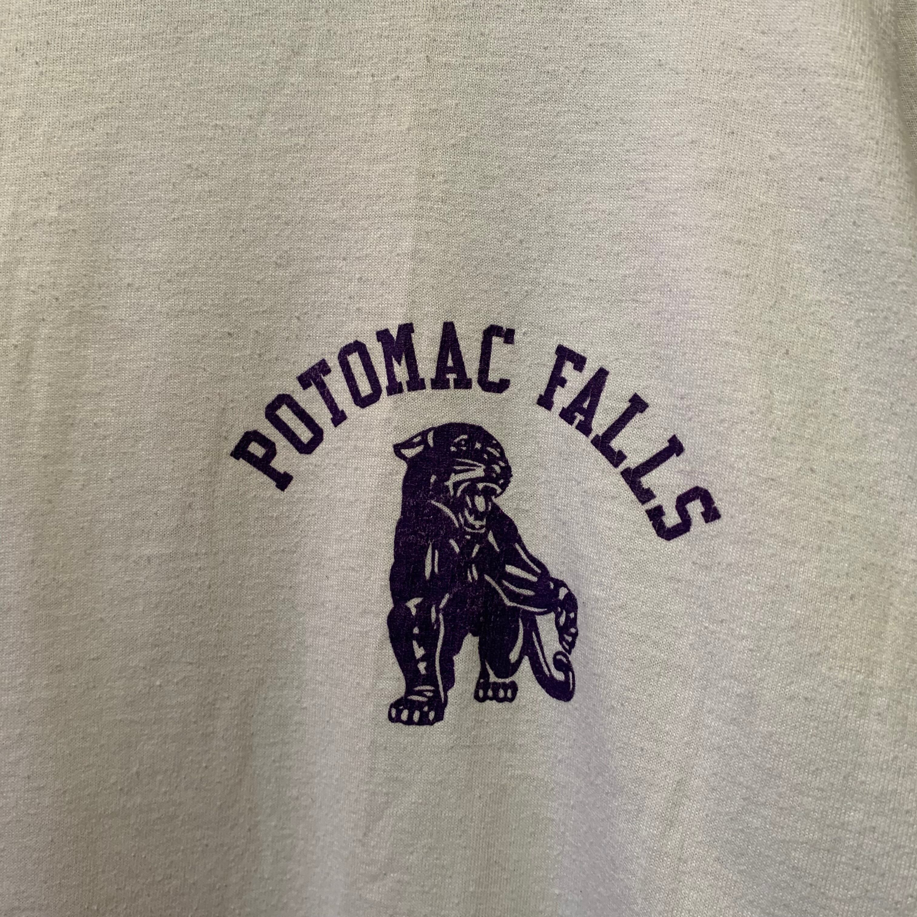 “brand unknown” 80’s white×purple printed S/S ringer Tee made in USA