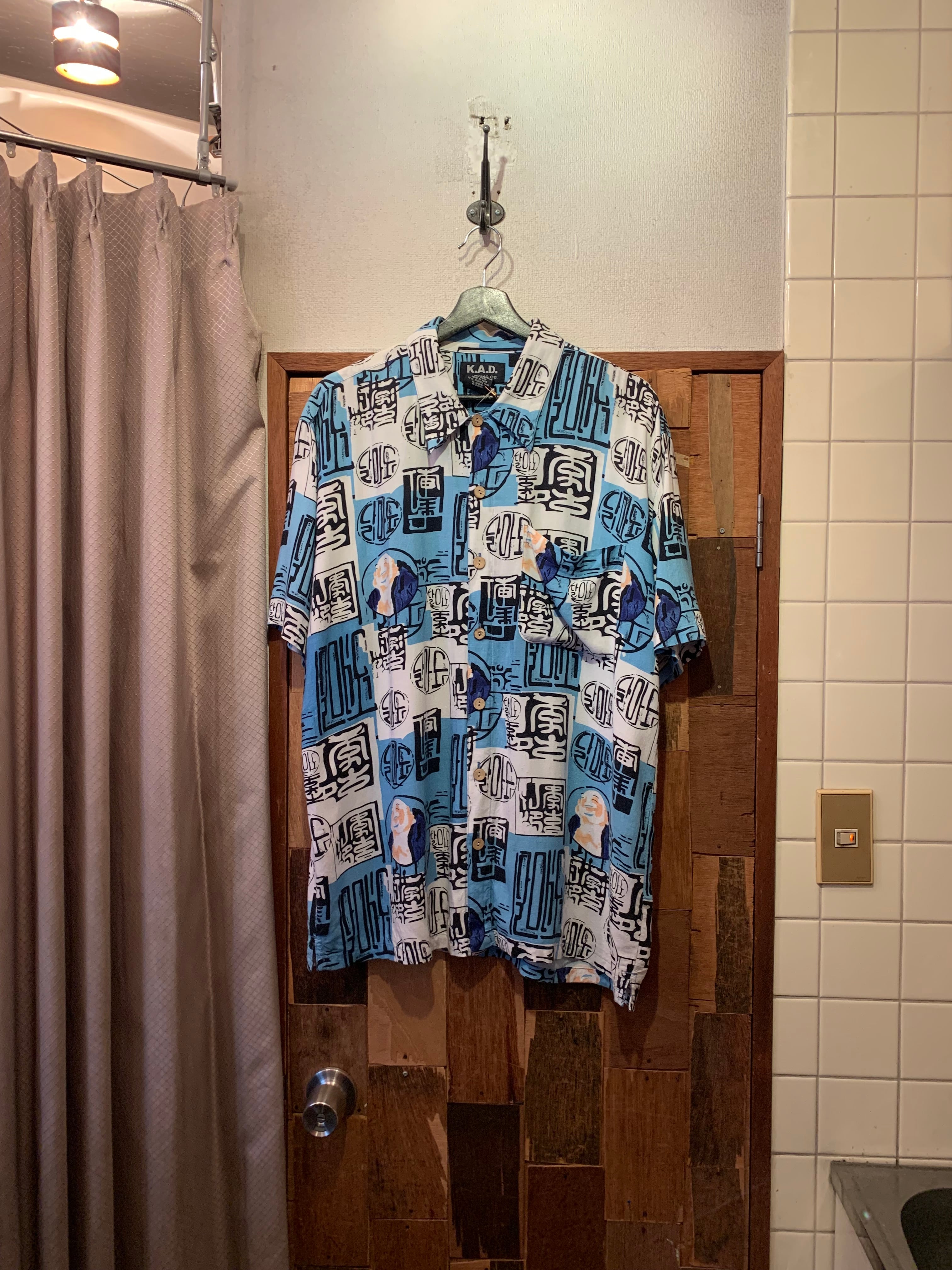 “K.A.D” white×light blue rayon unique pattern S/S shirt