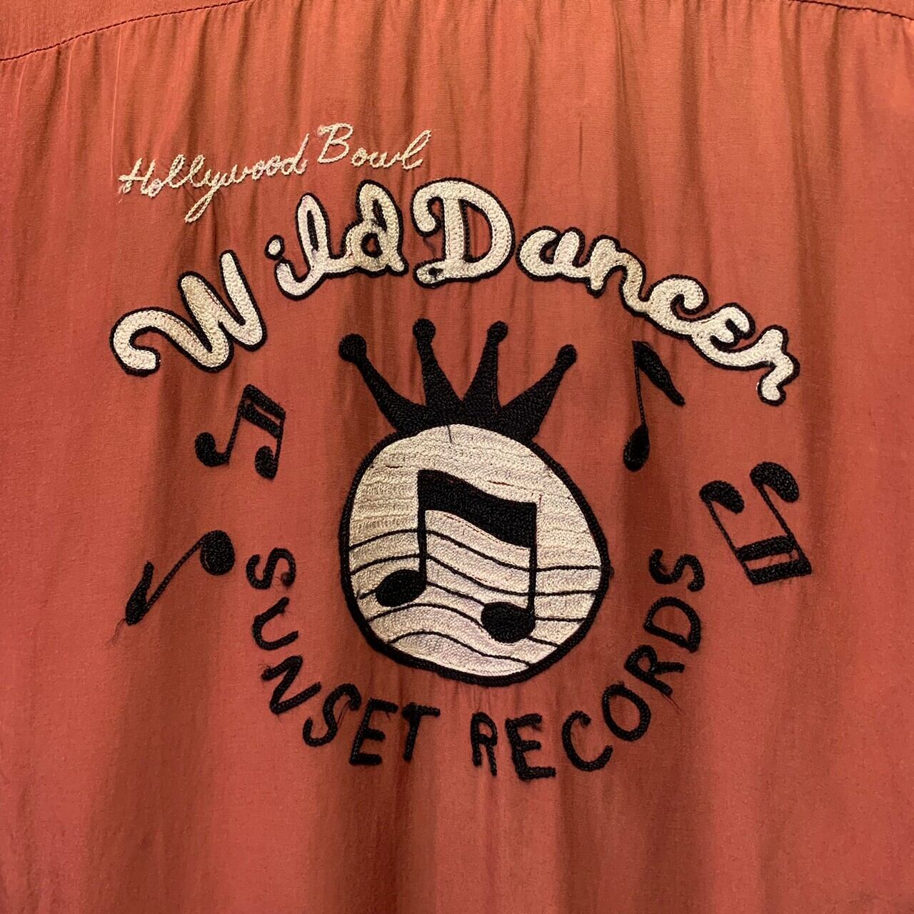 “WILD DANCER” dark red embroidery design S/S open-collar shirt