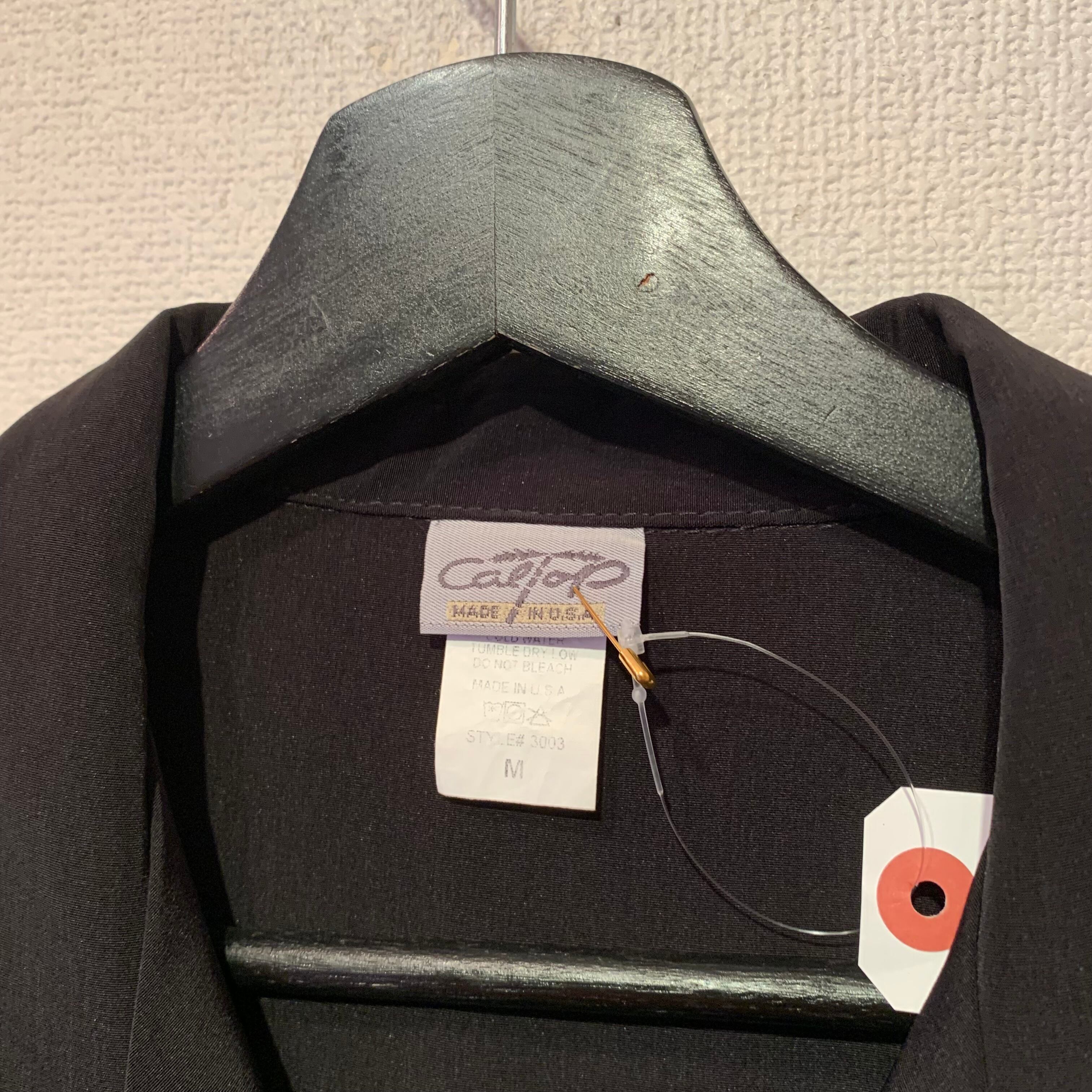 “CalTop” black polyester S/S open-collar shirt made in USA