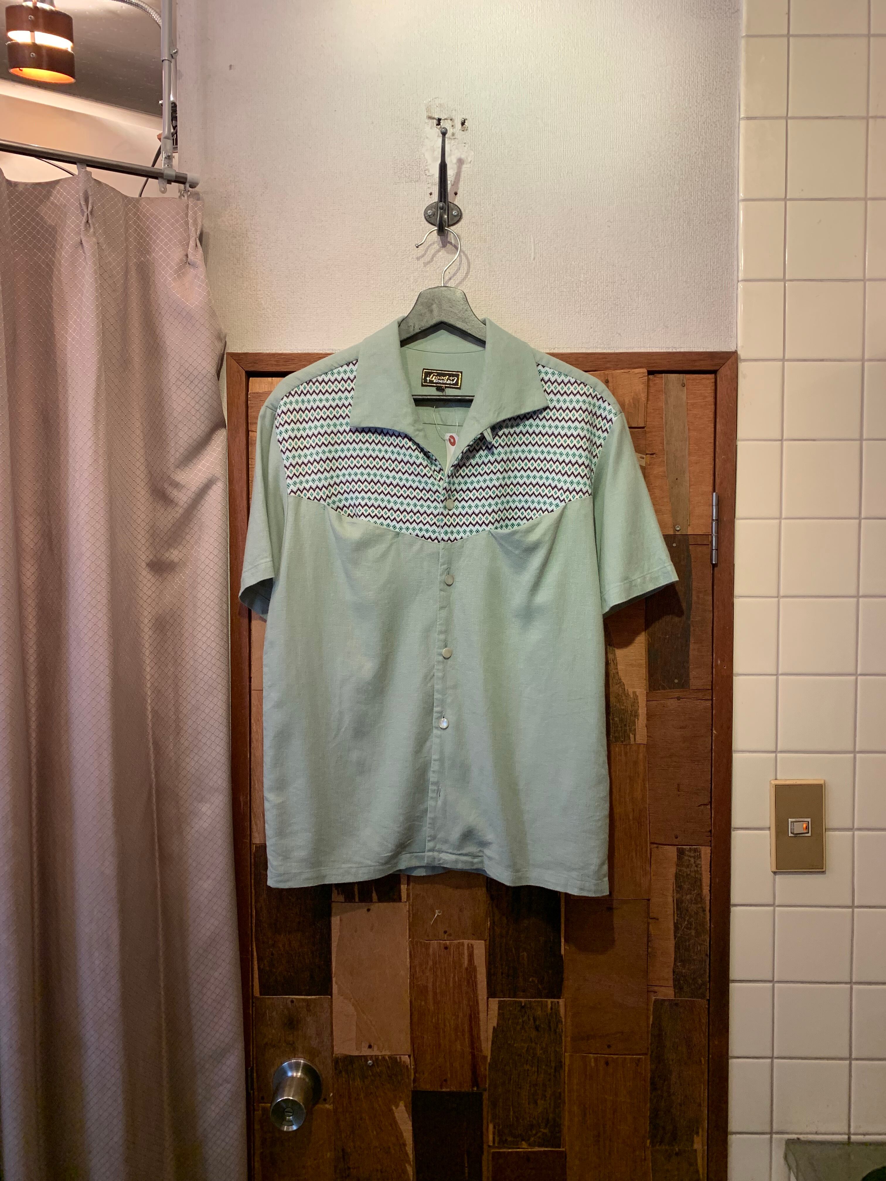 “Good Rockin” pistachio color rayon/linen S/S Italian-collar shirt