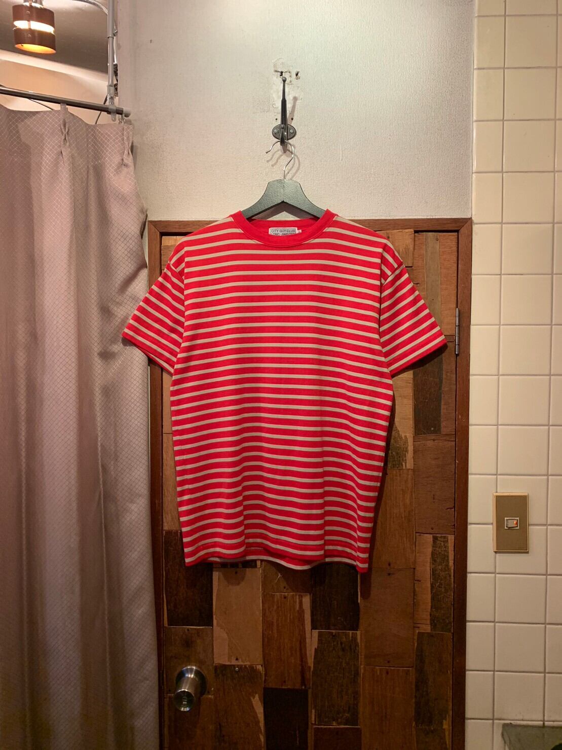 “CITY GUY CLUB” red×gray poly/cotton border pattern S/S Tee