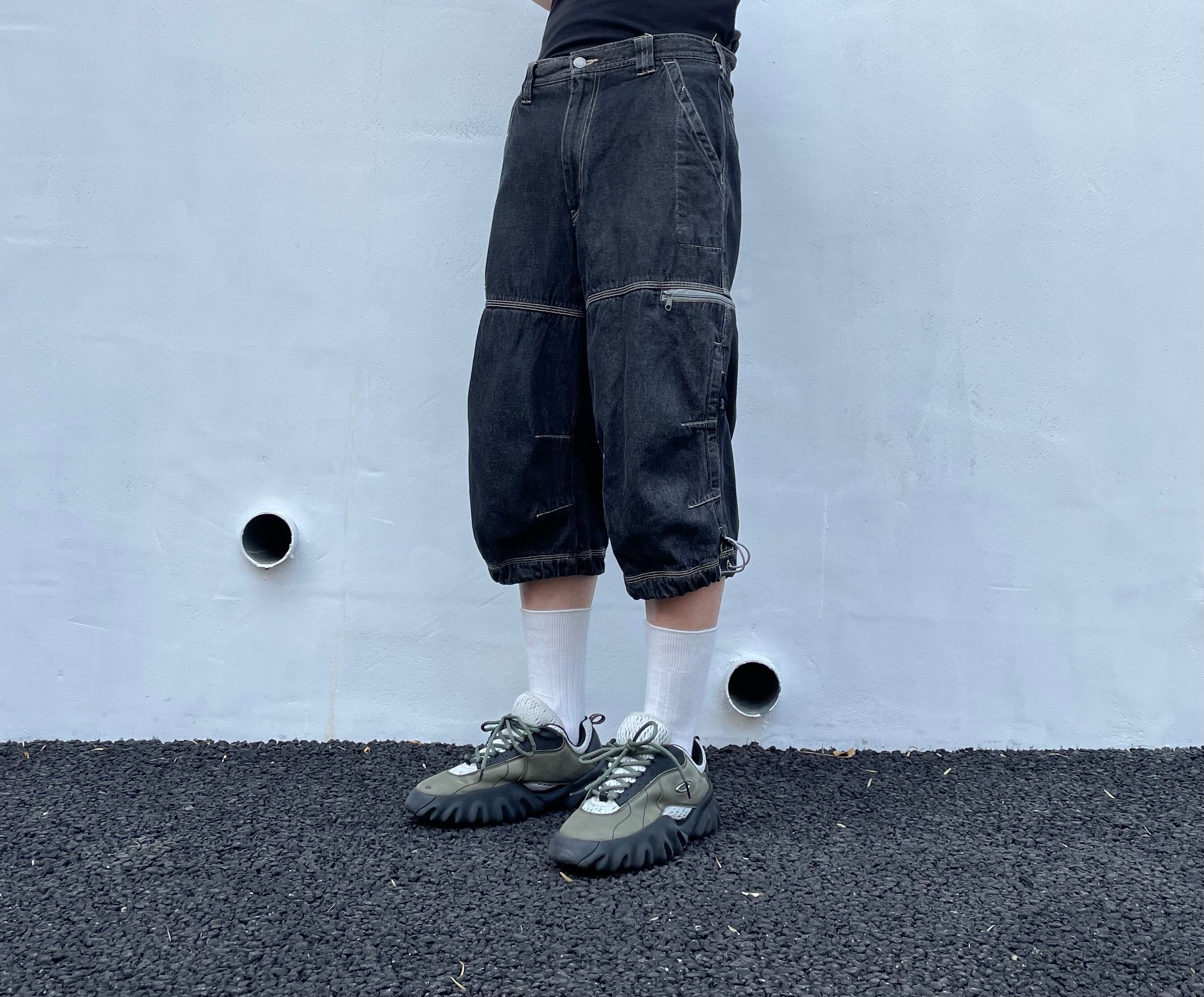 “CRAFTED WITH PRIDE” black cotton zip&drawcode design shorts
