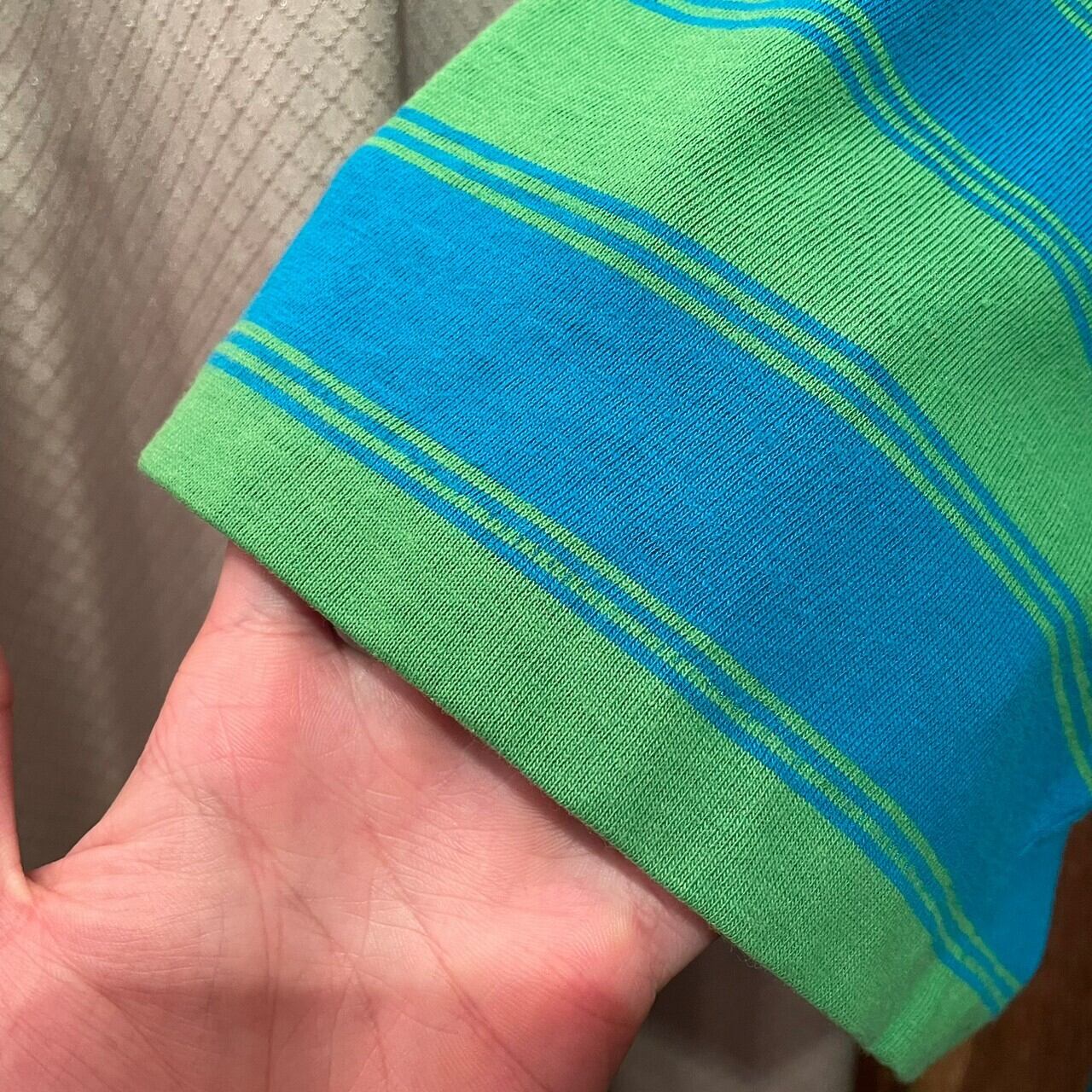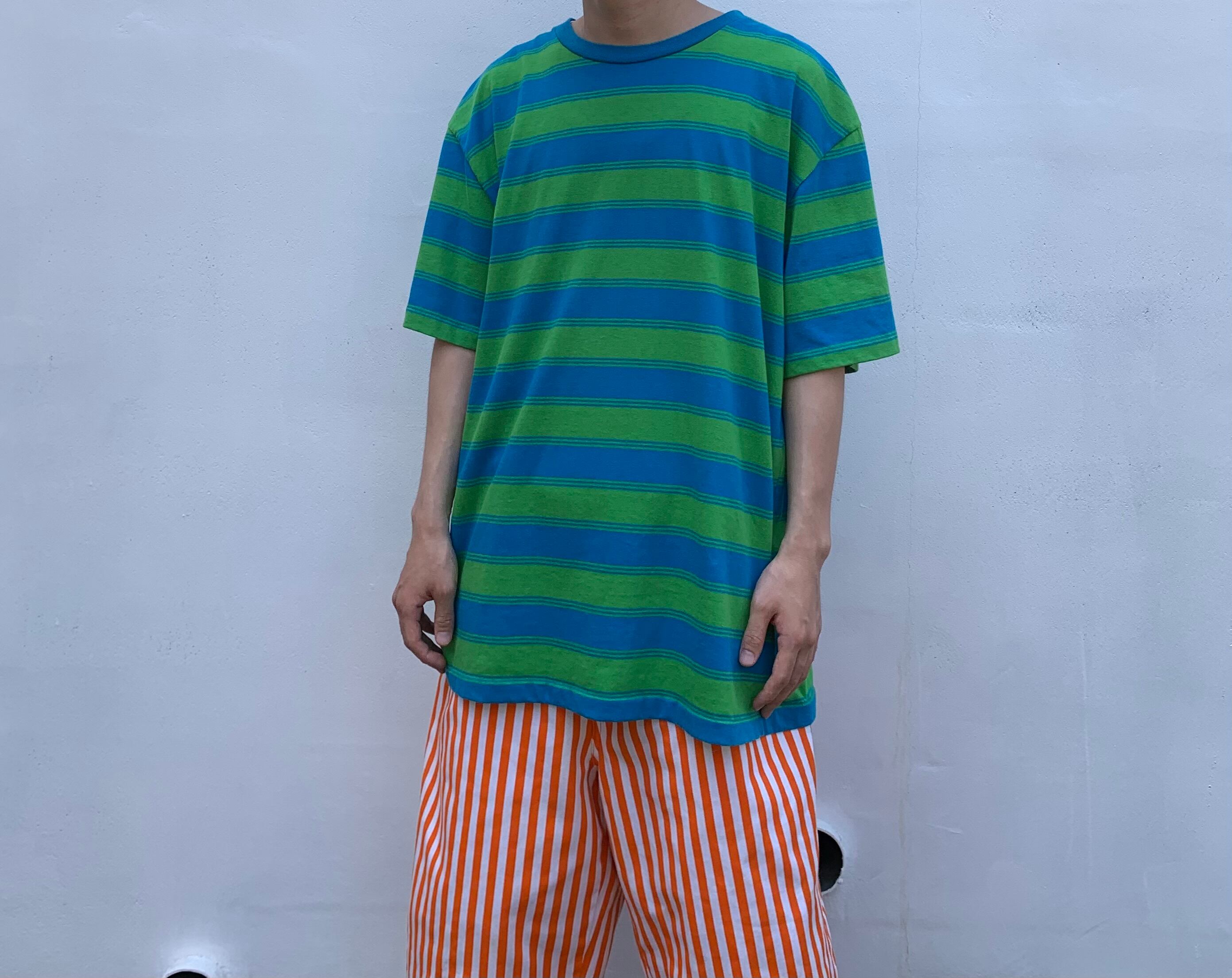 “CHEETAH” 90’s light blue×light green cotton border pattern S/S Tee made in USA