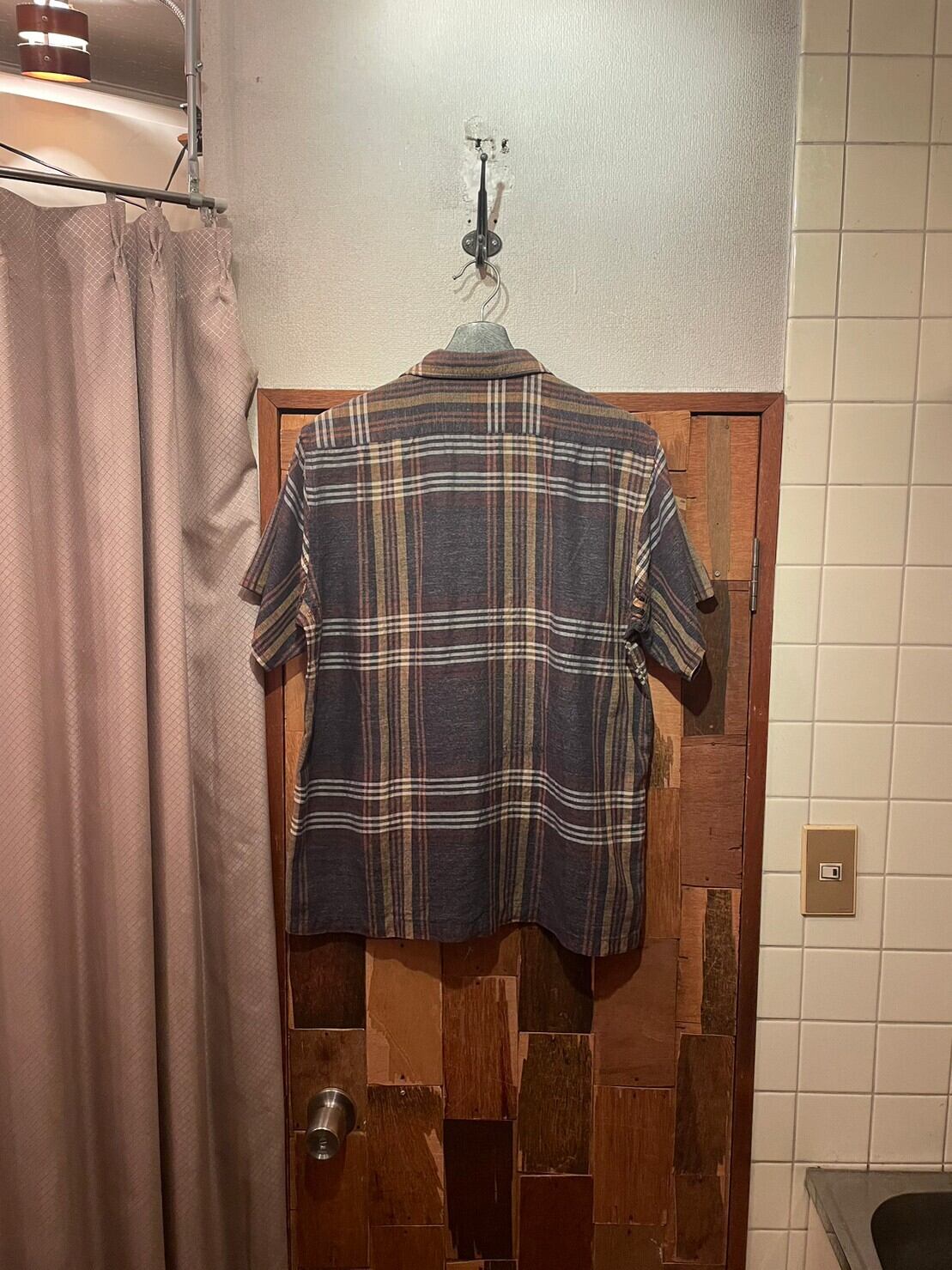 “Maxi” 60’s vintage charcoal base check pattern S/S Italian-collar shirt