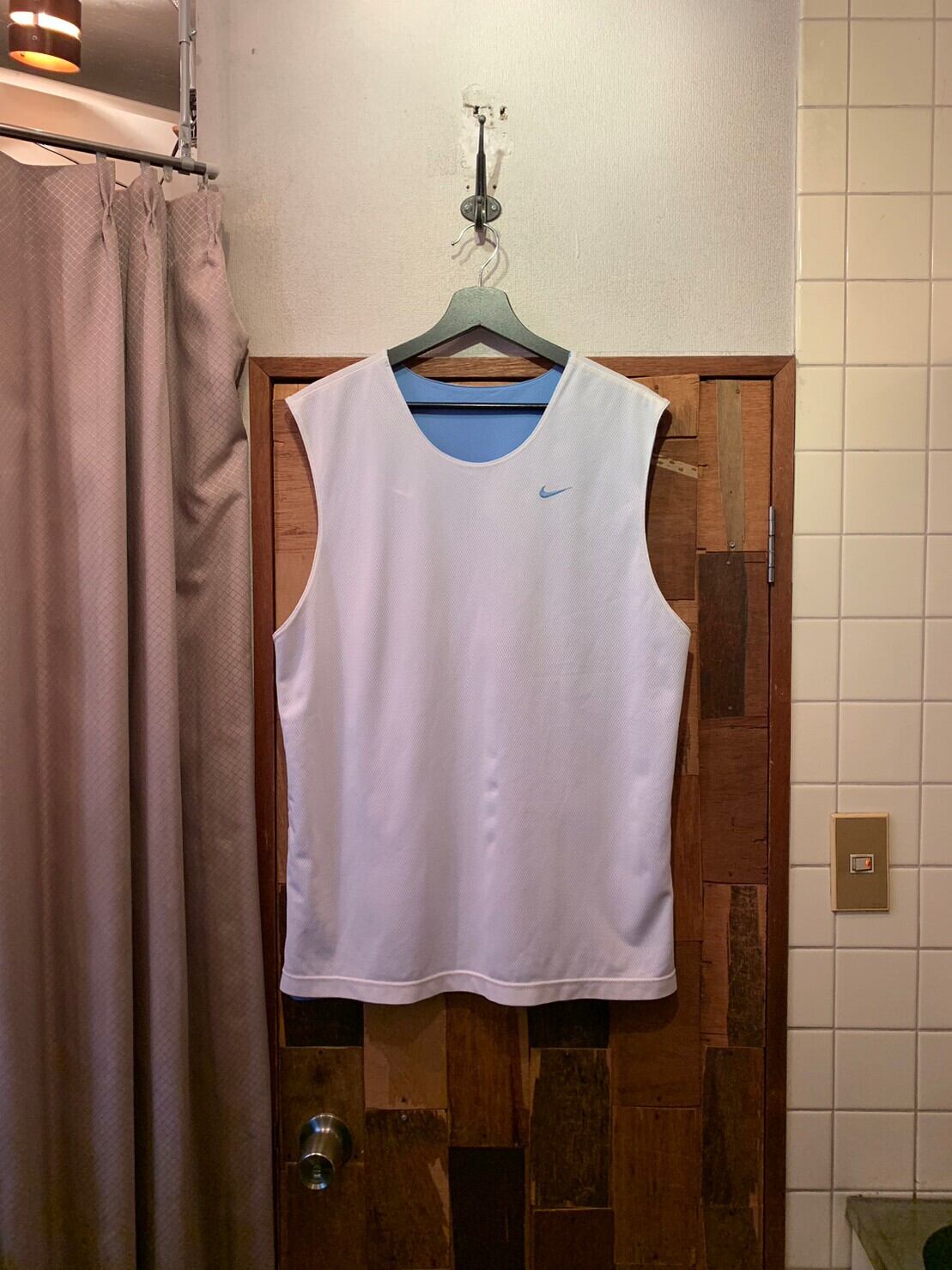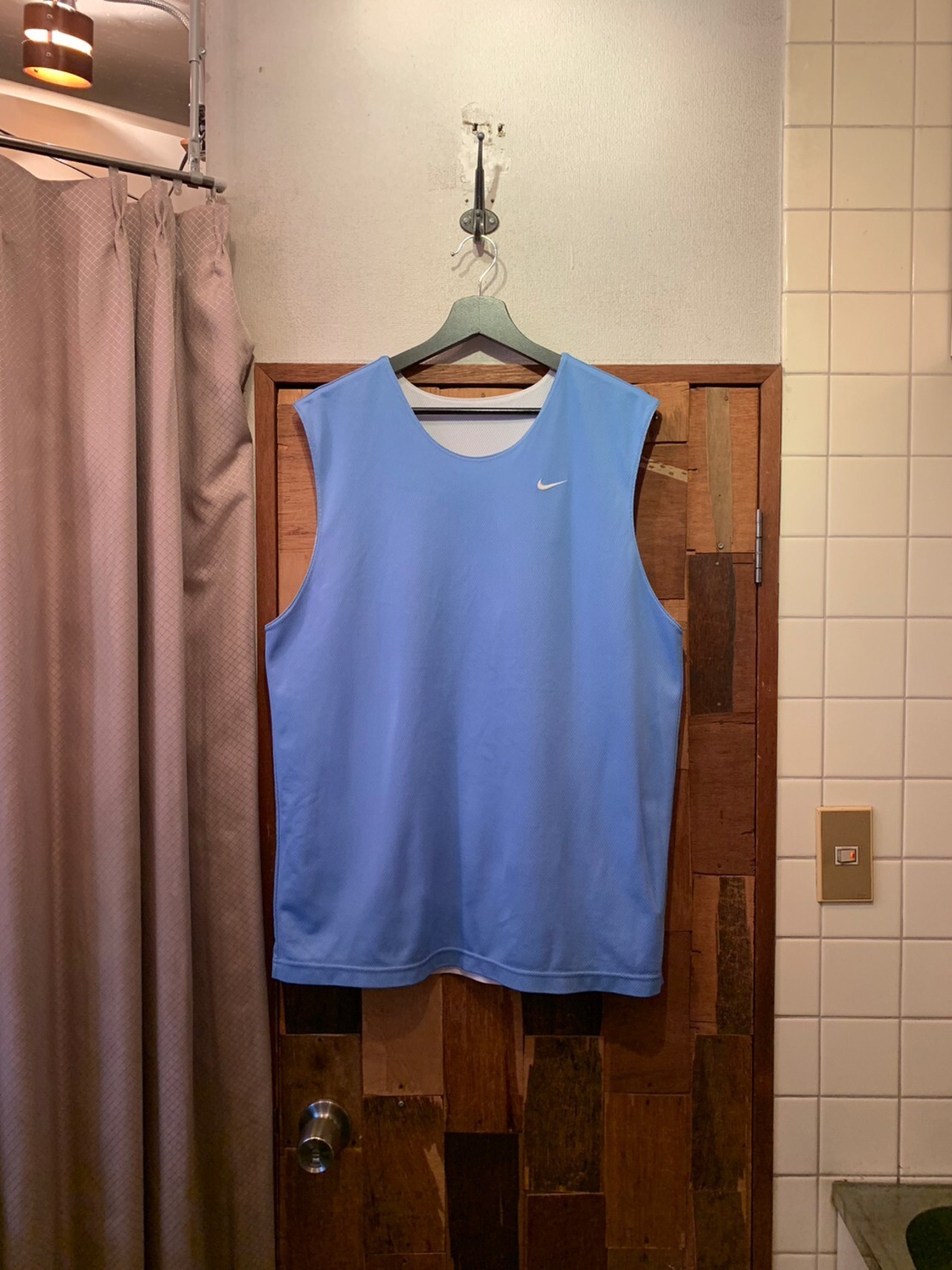 “NIKE” reversible!! white×light blue polyester mesh no-sleeve Tee