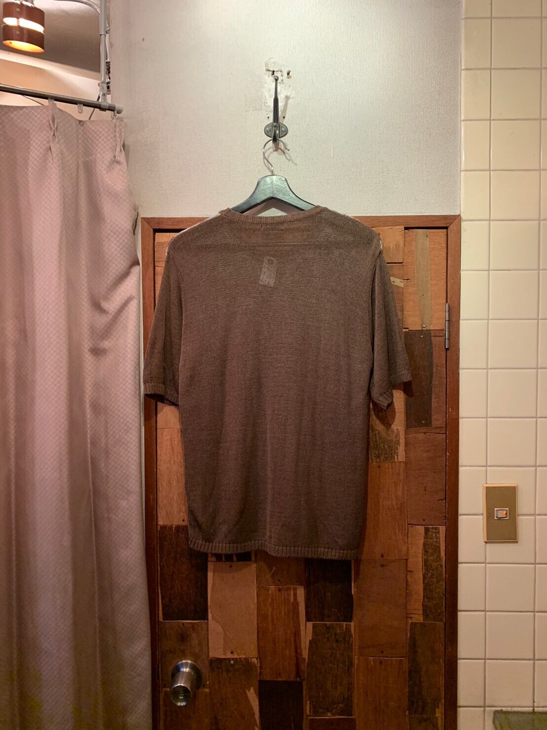 “MARY MIND” brown×white acrylic/nylon design S/S kint Tee