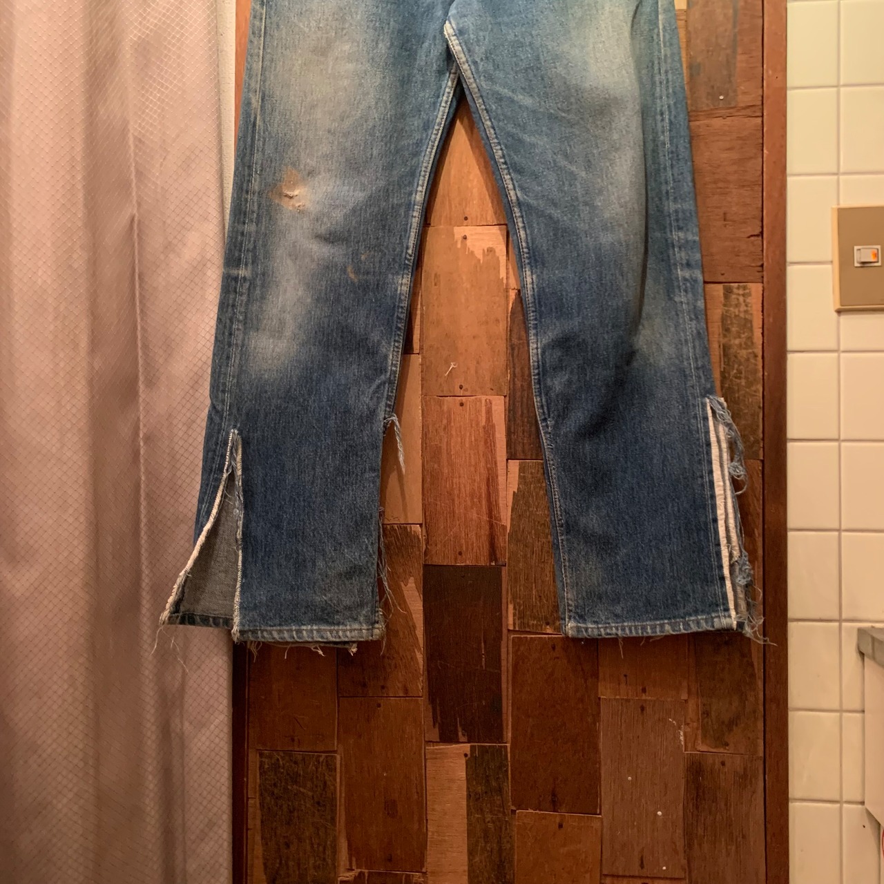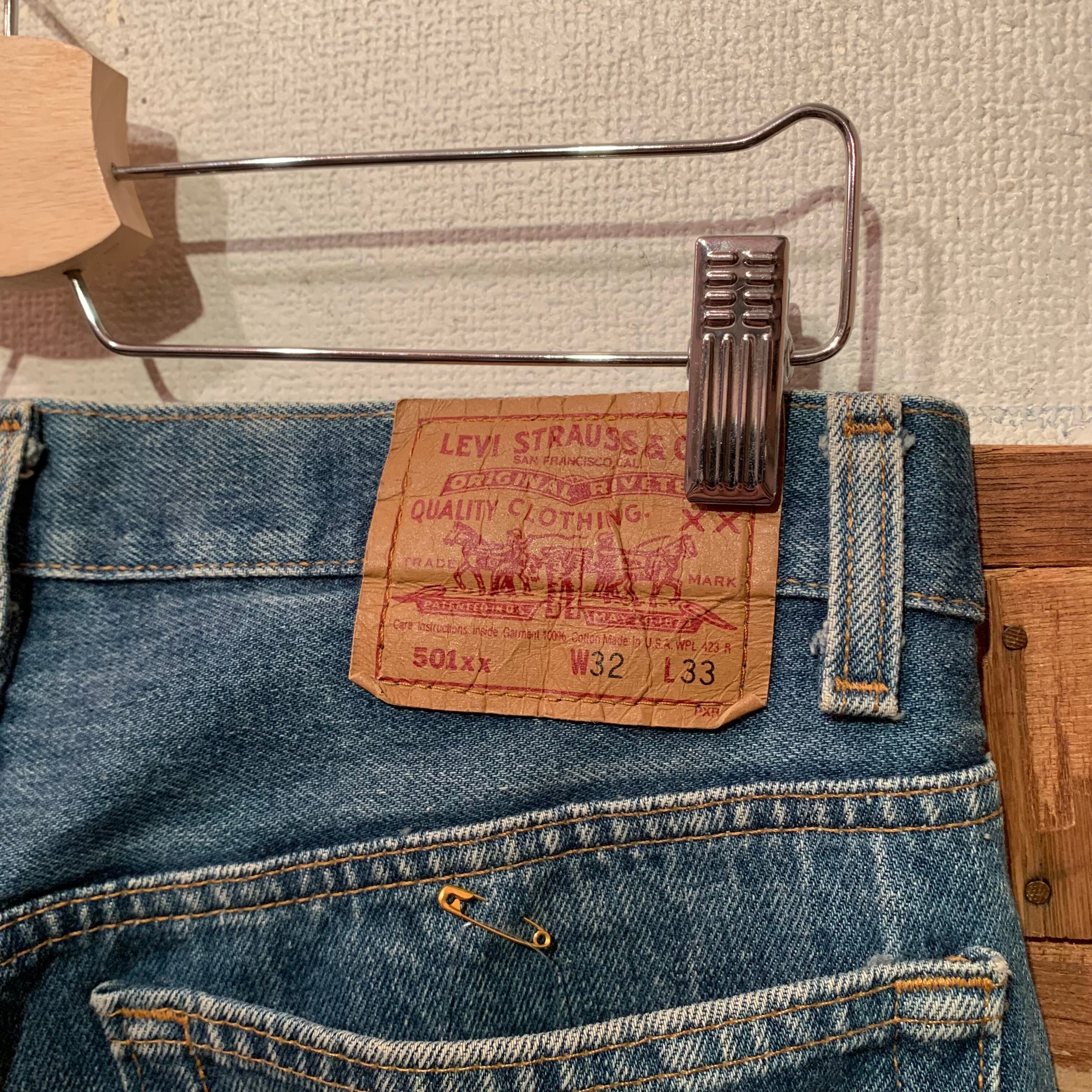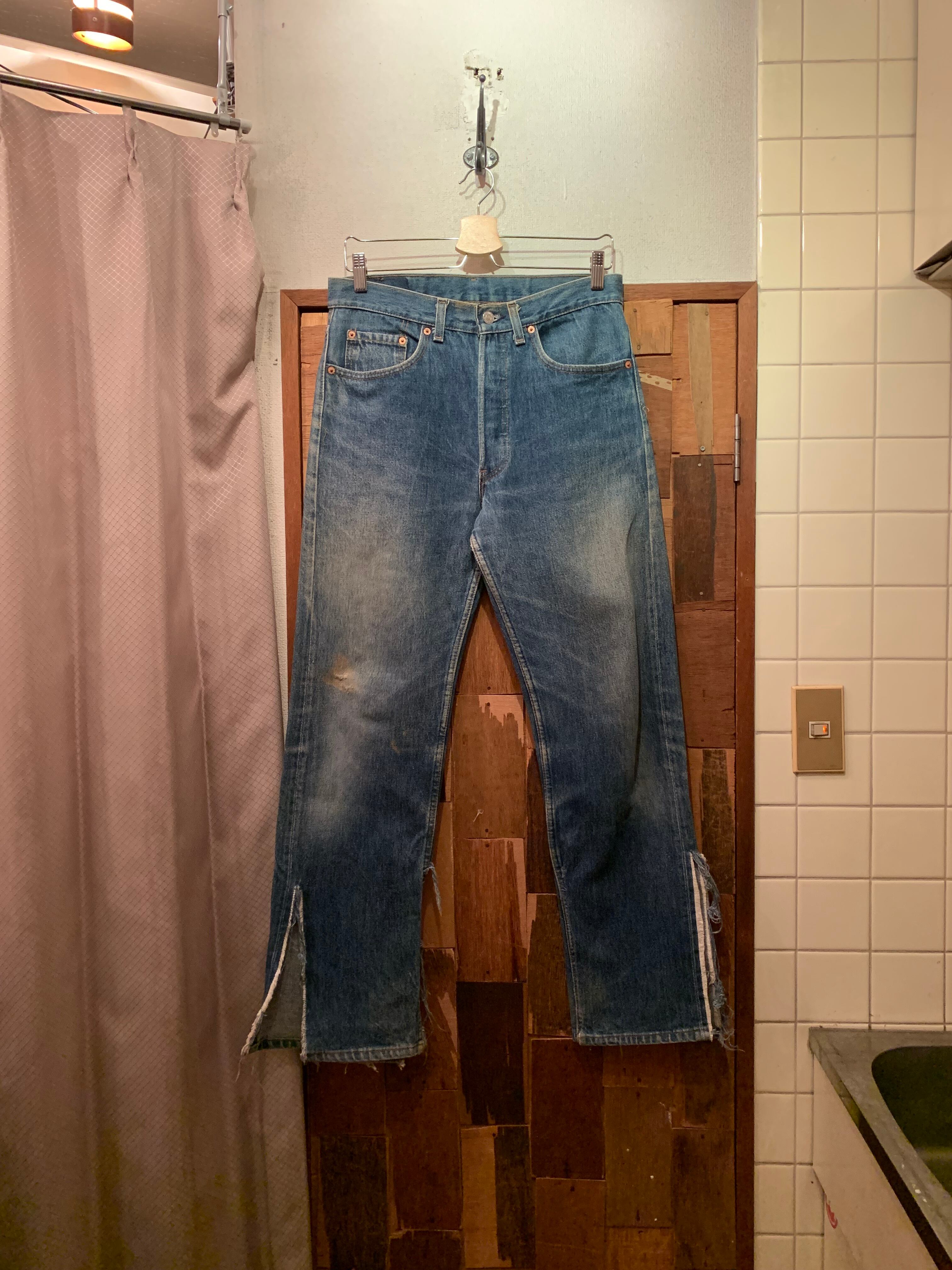“Levi’s” 92’s 501xx indigo damage design denim pants made in USA