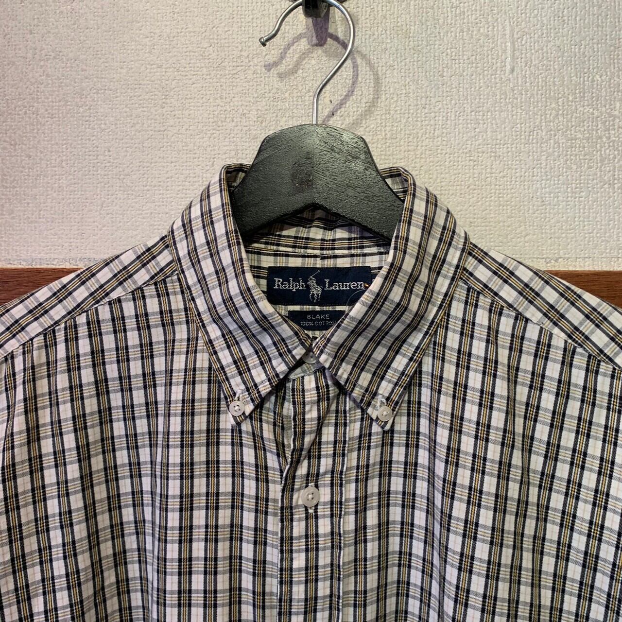 “Ralph Lauren” ivory base cotton check pattern S/S shirt